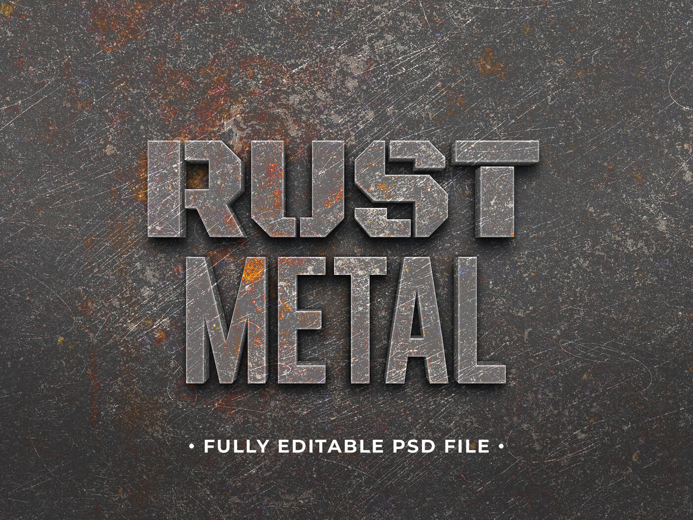 Rust Metal PSD Fully Editable Text Effect. Layer Style PSD Mockup Template