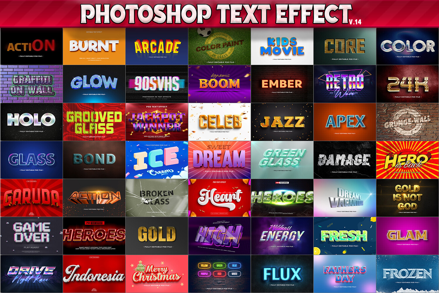 100 Photoshop Text Effects, 3D Fully Editable PSD Templates, Retro, Neon, Gold, Glass, Action