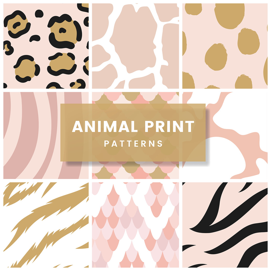 9 Seamless Animal Textures, Wildlife Vector Patterns.