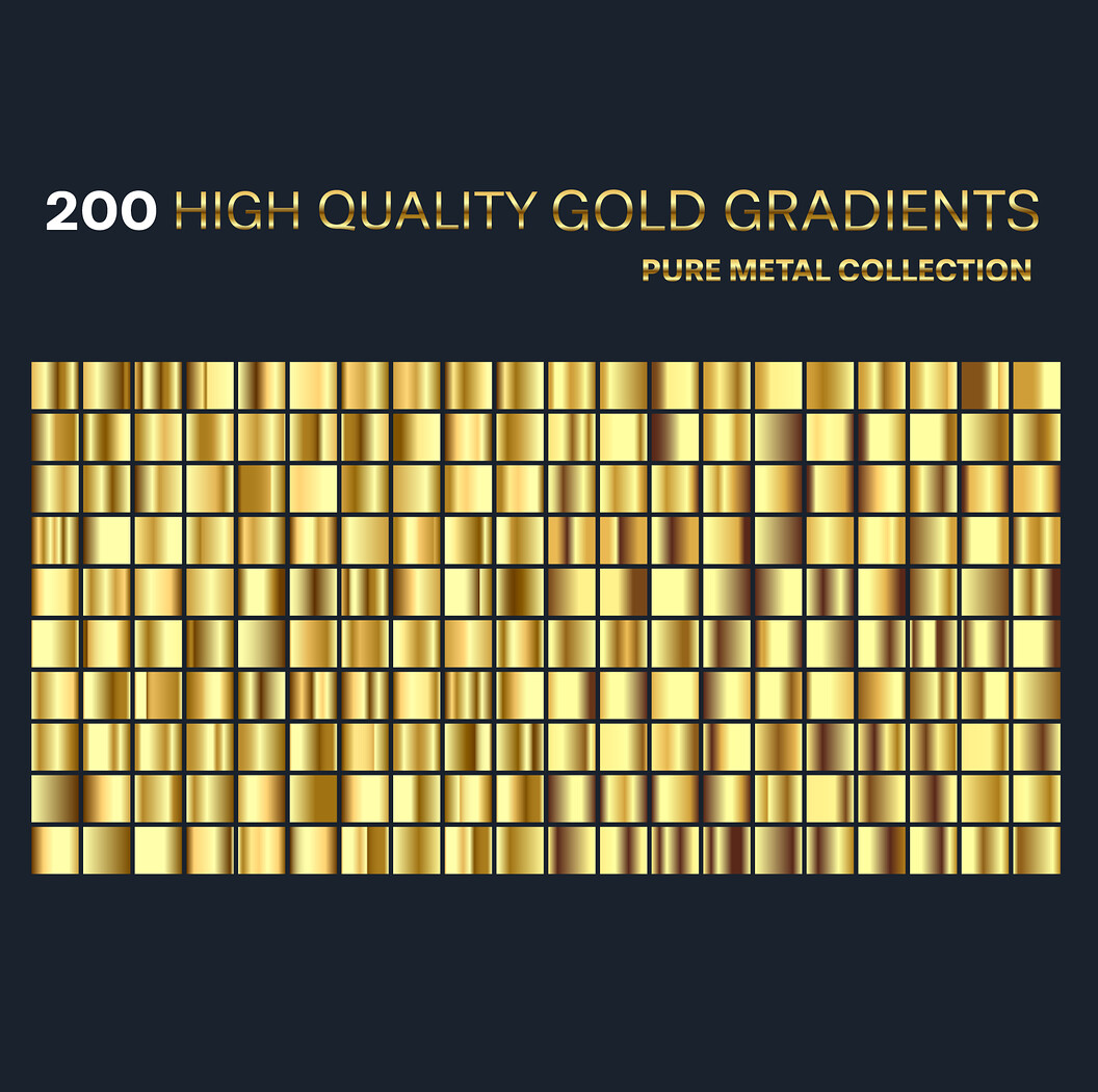 Elevate your design projects with the ultimate library of 200 high-end metallic gold gradients.