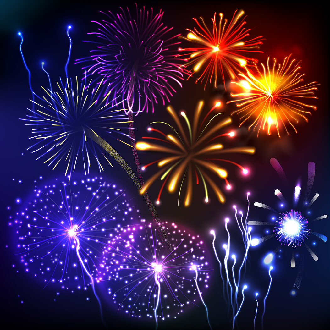 Colorful Fireworks Explosion, Lighting Up Night Sky, Show Background, EPS File
