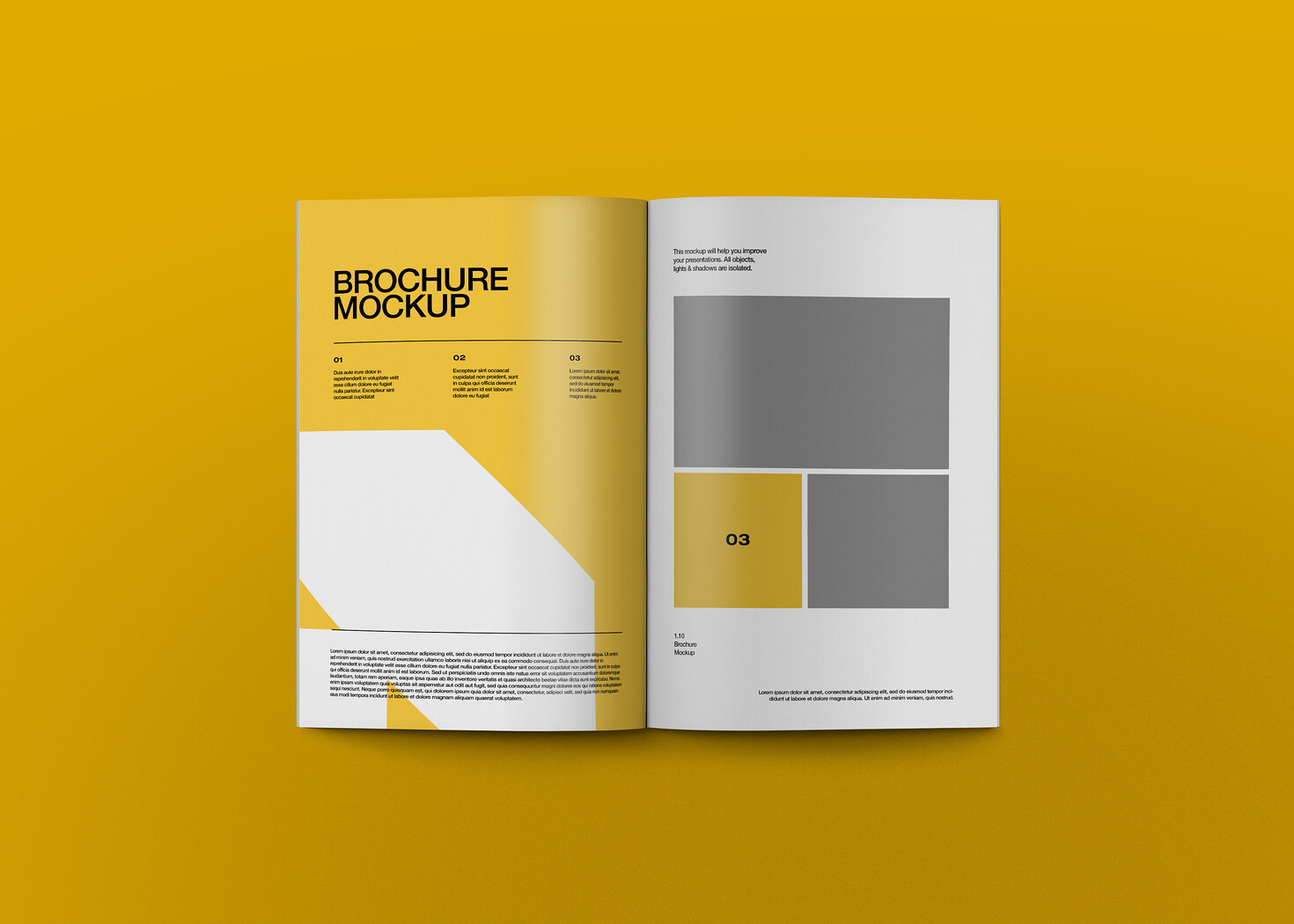 Showcase your editorial content, informational flyers, or creative reports with this clean and professional open brochure mockup, which features a bi-fold document displaying the inner pages. This mockup is perfect for designers, businesses, or publishers needing a high-quality presentation for detailed layouts, print advertising, or corporate reports.
