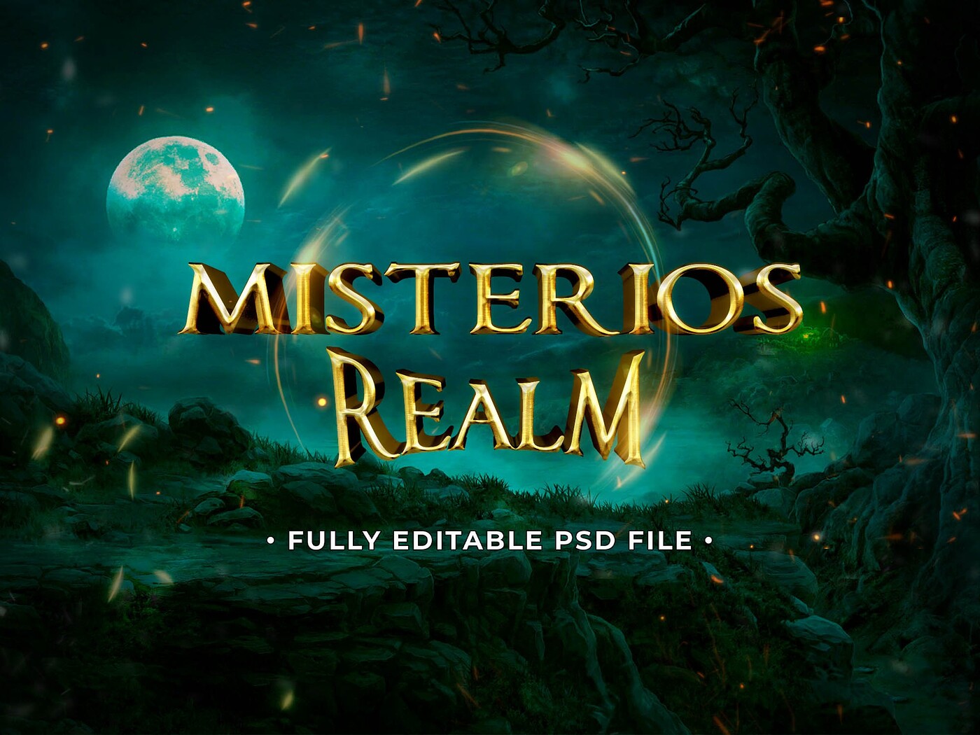 Misterios Realm PSD Fully Editable Text Effect. Layer Style PSD Mockup Template