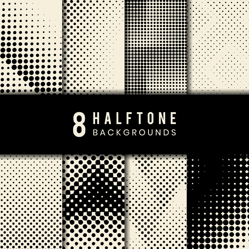 8 Halftone Backgrounds, Black, Cream, Vintage Dot Patterns, Retro Texture, EPS File