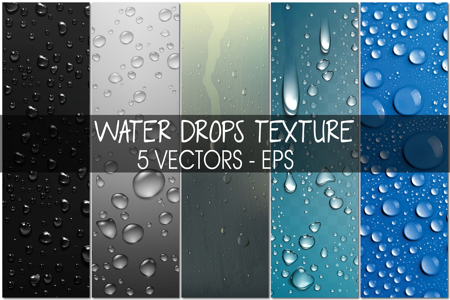 A collection of five high-quality water droplet textures in vector format. Perfect for enhancing designs that require a wet, fresh, or aquatic theme.