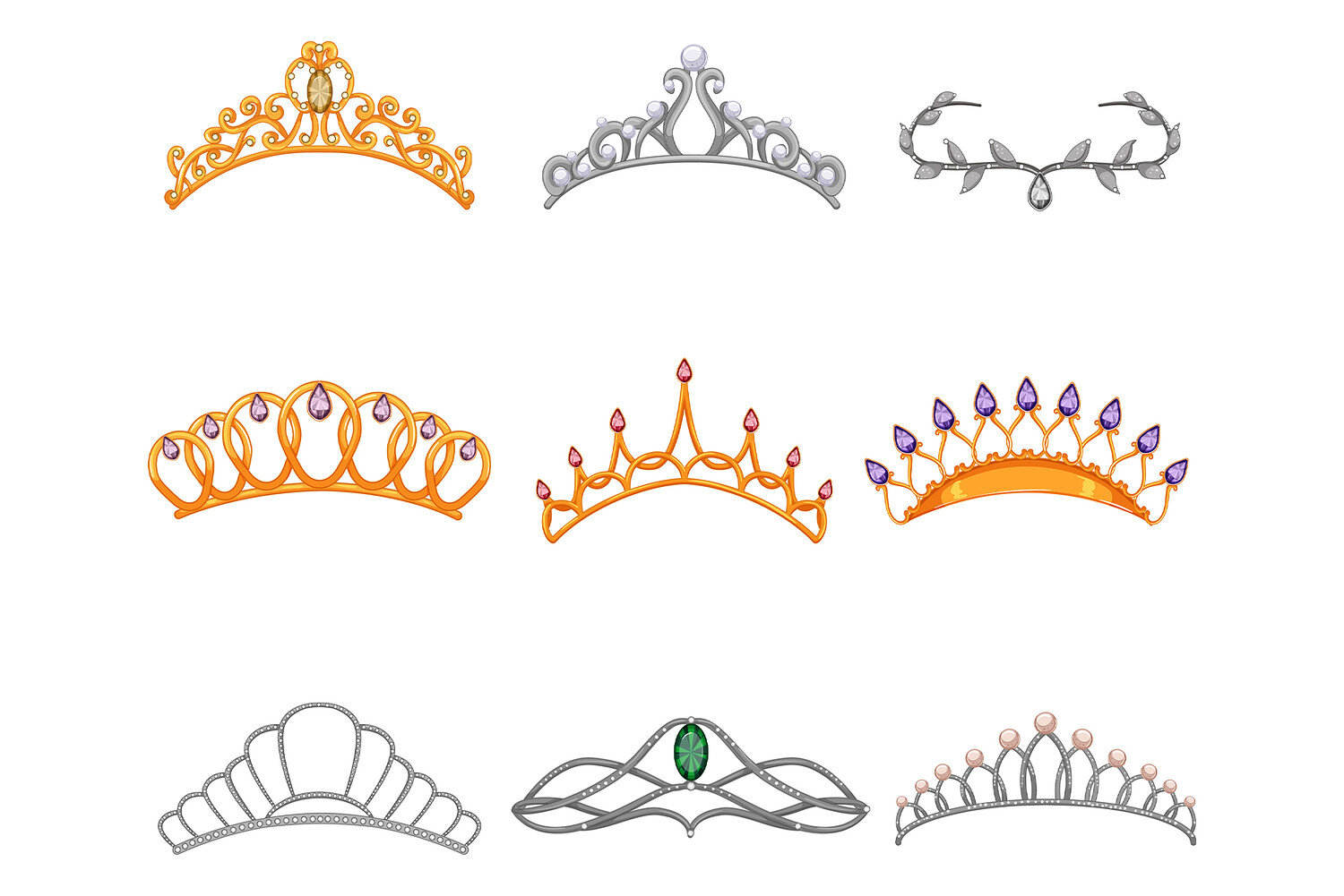 9 Luxury Tiaras, Royalty Crown Jewelry, Queen, Princess, Diamond, EPS File