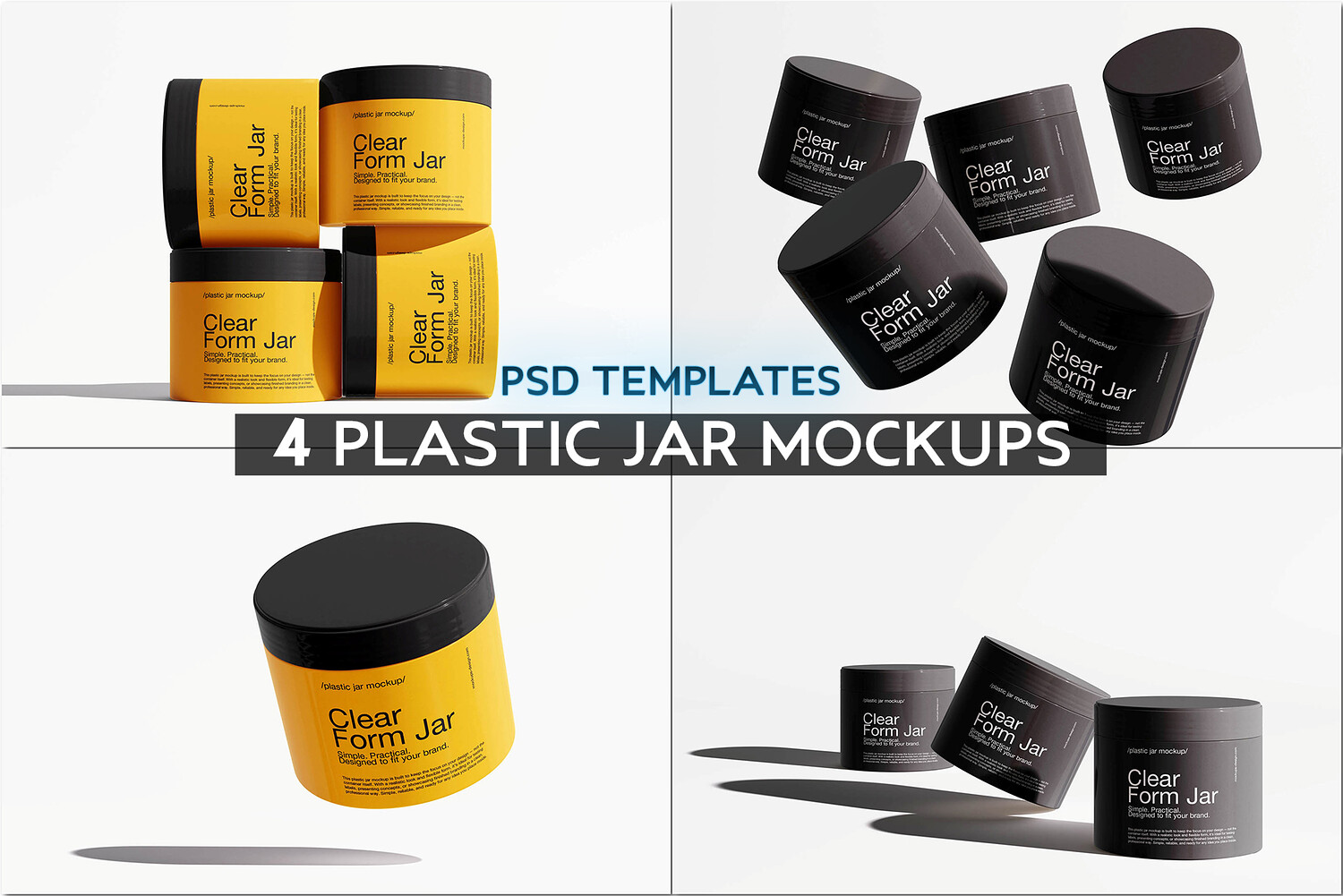 4 Plastic Jar Mockup PSD Templates - Professional High-End Cosmetic & Skincare Packaging