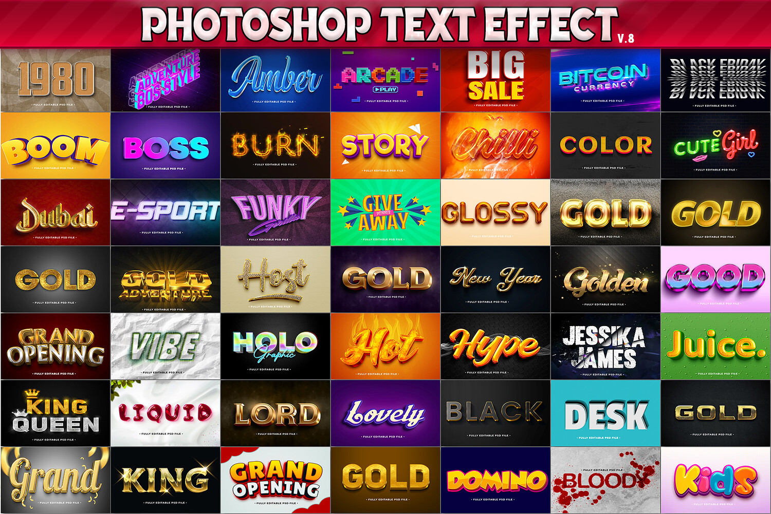 100 Photoshop Text Effects, 3D Fully Editable PSD Templates, Cinematic Styles, Gold, Silver, Comic