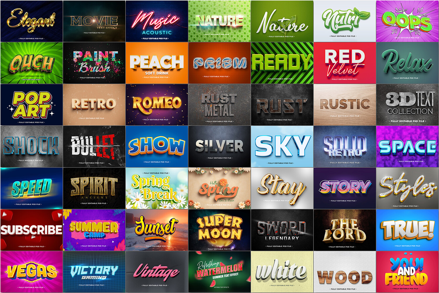 EDITABLE 3D TEXT EFFECTS BUNDLE! - 95% OFF This text effect is 100% editable. You can make any text as this effect by typing your text, No Skill. Well Organized, easy to edit, smart object layers. You will you get a 100 PSD template files.