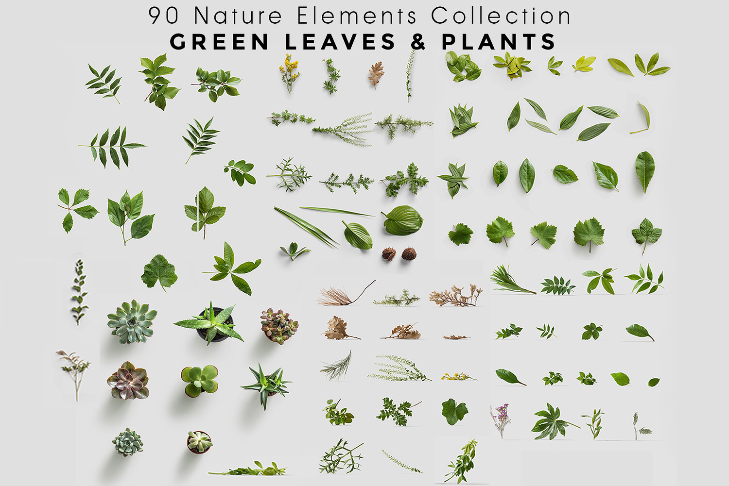 90 Nature Elements Collection – Green Leaves & Botanical Plants, Spring Foliage, Herb Branches
