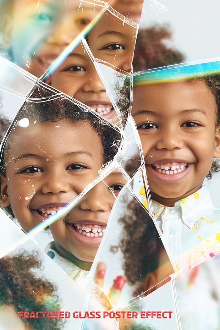 Fractured Glass Poster Effect, 1 PSD Template, 4500x3000 pixels, 300 PDI.