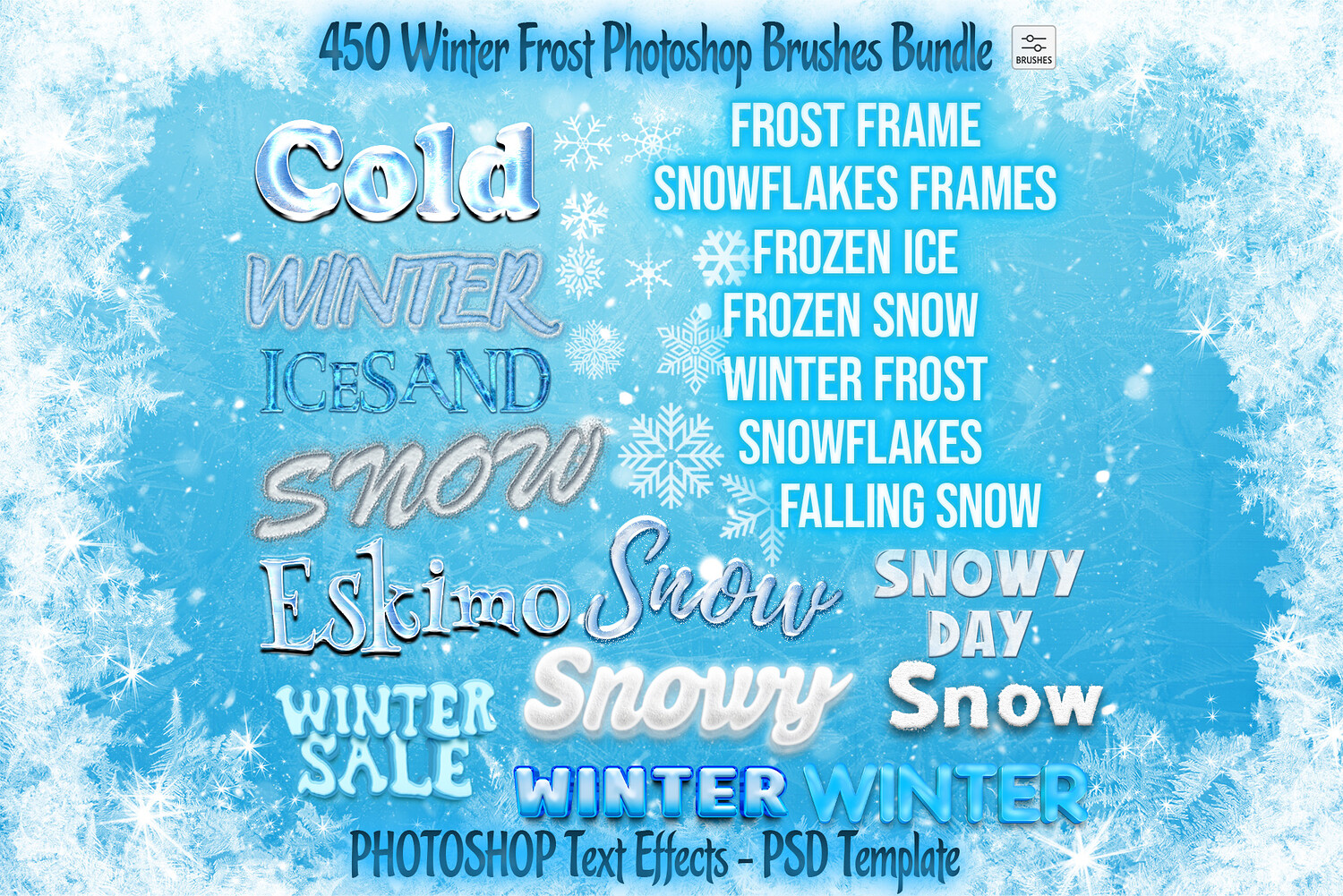 450 Winter Frost Photoshop Brushes Bundle, Snow, Ice, Snowflakes Frames, Frozen Text Effects PSD