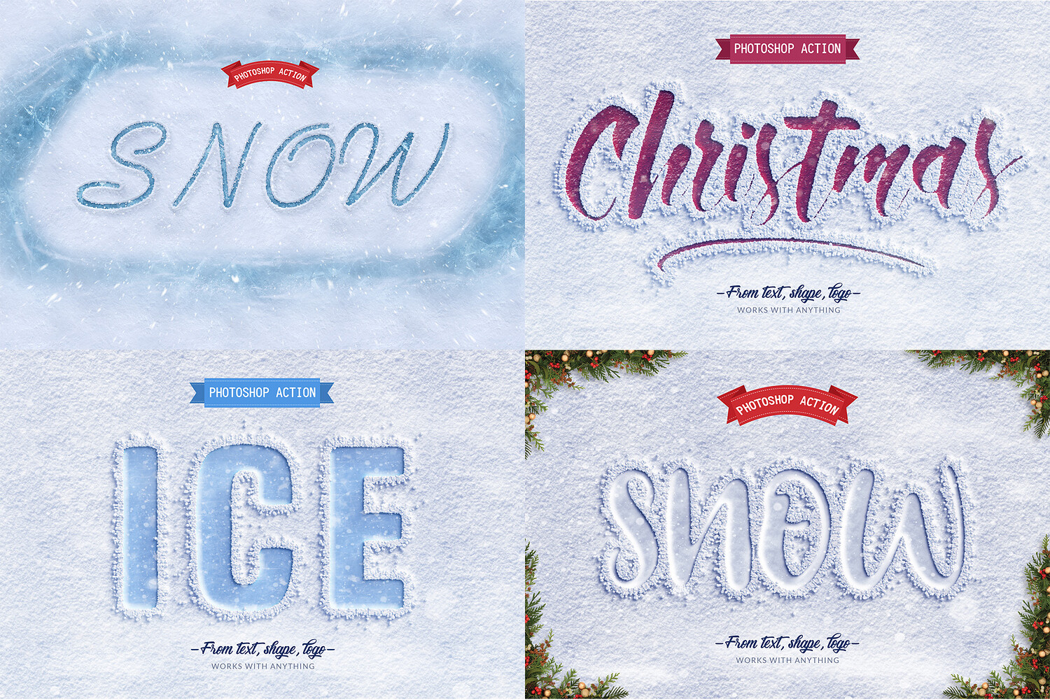 ❆ 13 PSD Text Effects Templates (Winter, Snow, Chirstmas, Cold, Ice) ❆ 2 Photoshop Actions to create text in the snow