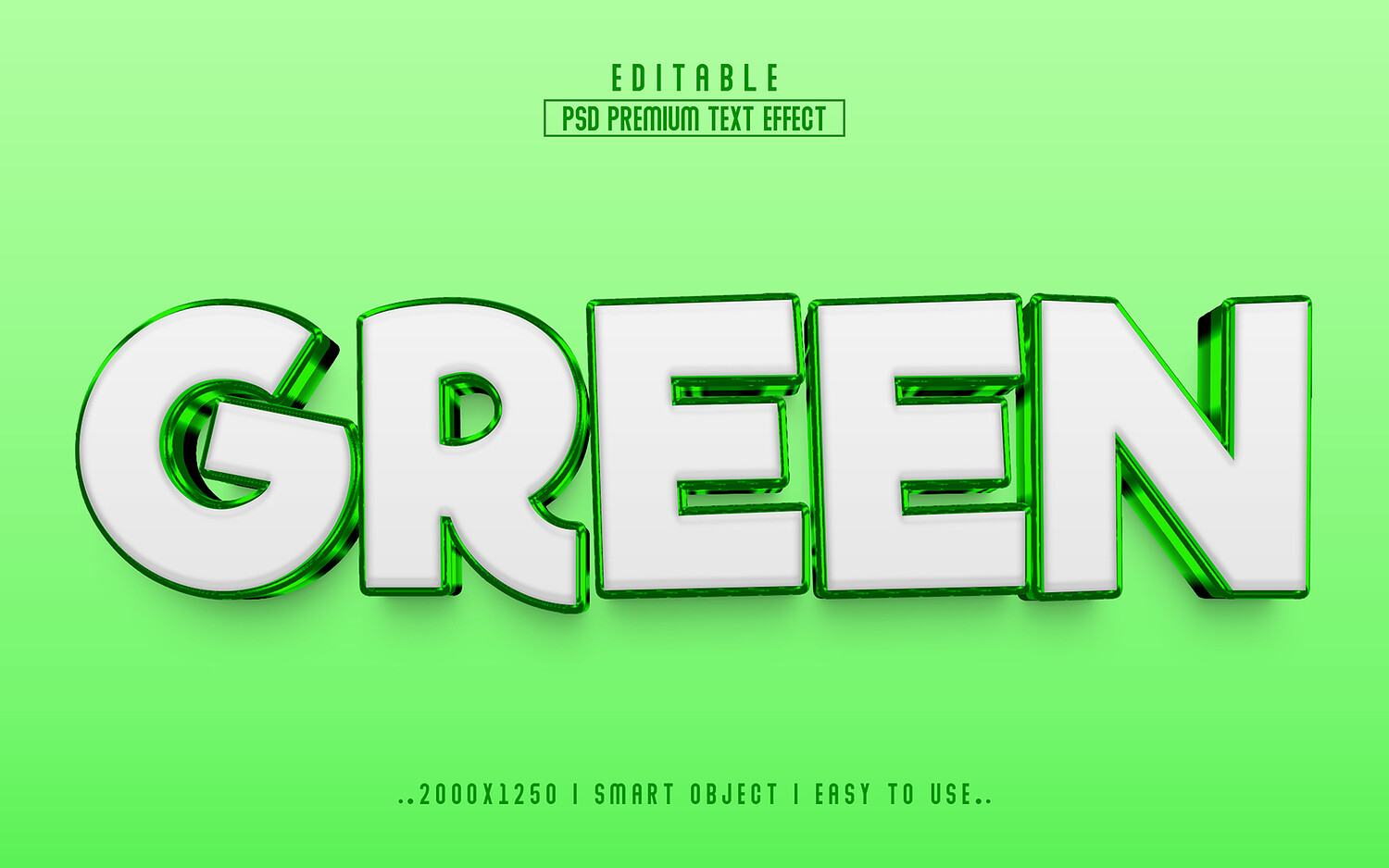 3D Green PSD Fully Editable Text Effect. Layer Style PSD Mockup Template