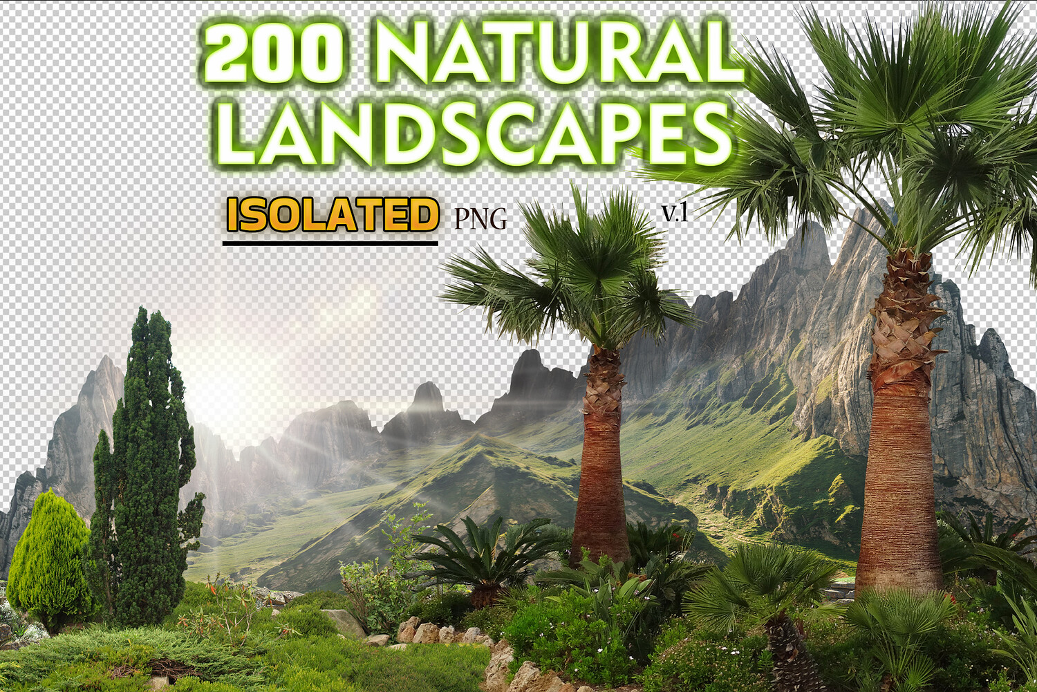 THE SET INCLUDES: - 200 Isolated Natural Landscapes - PNG Files, Cut Out - Size 6000x4000 pixels