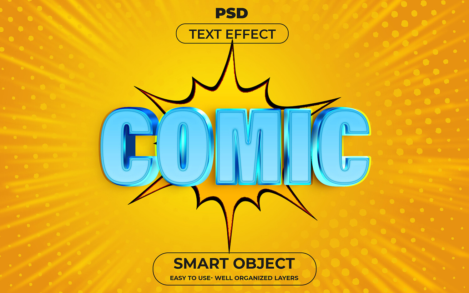 3D Comic PSD Fully Editable Text Effect. Layer Style PSD Mockup Template