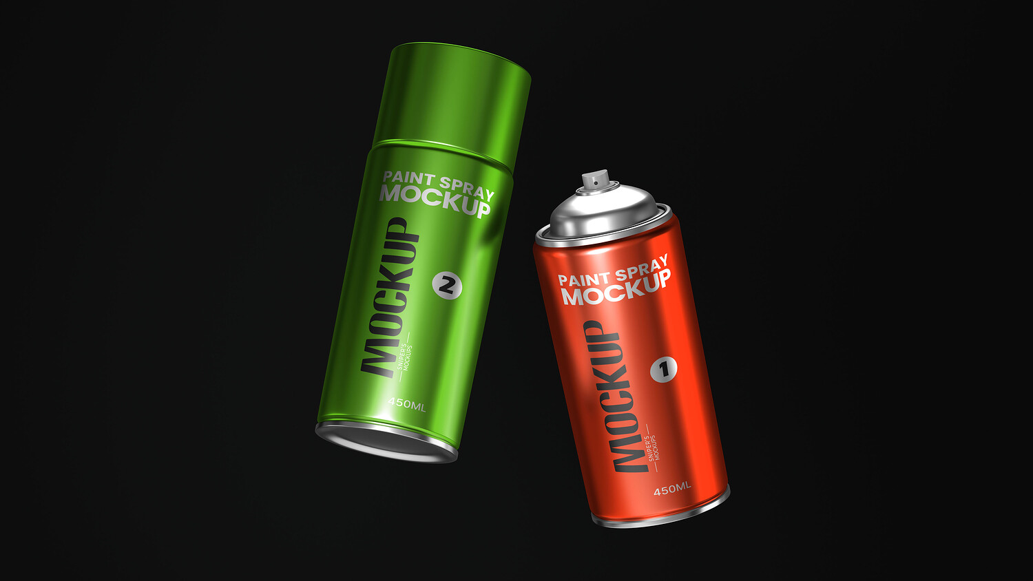Dual Paint Spray Can Mockup PSD Template - Metallic