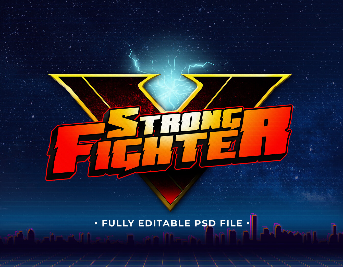 Strong Fighter PSD Fully Editable Text Effect. Layer Style PSD Mockup Template