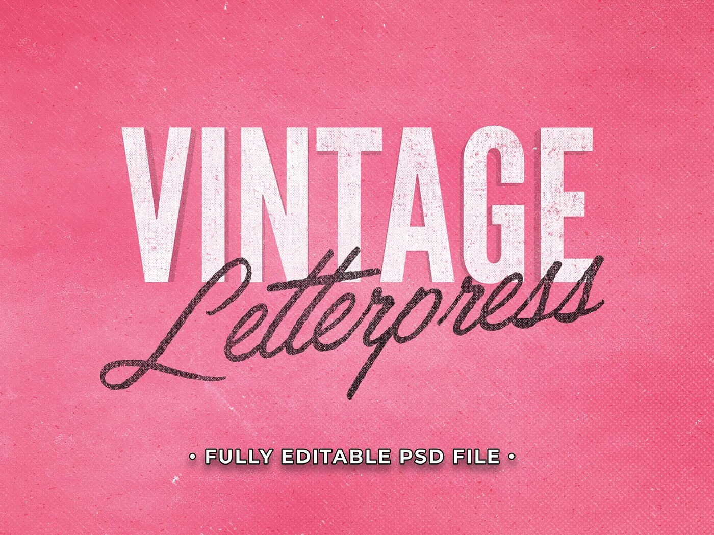Vintage Letterpress PSD Fully Editable Text Effect. Layer Style PSD Mockup Template