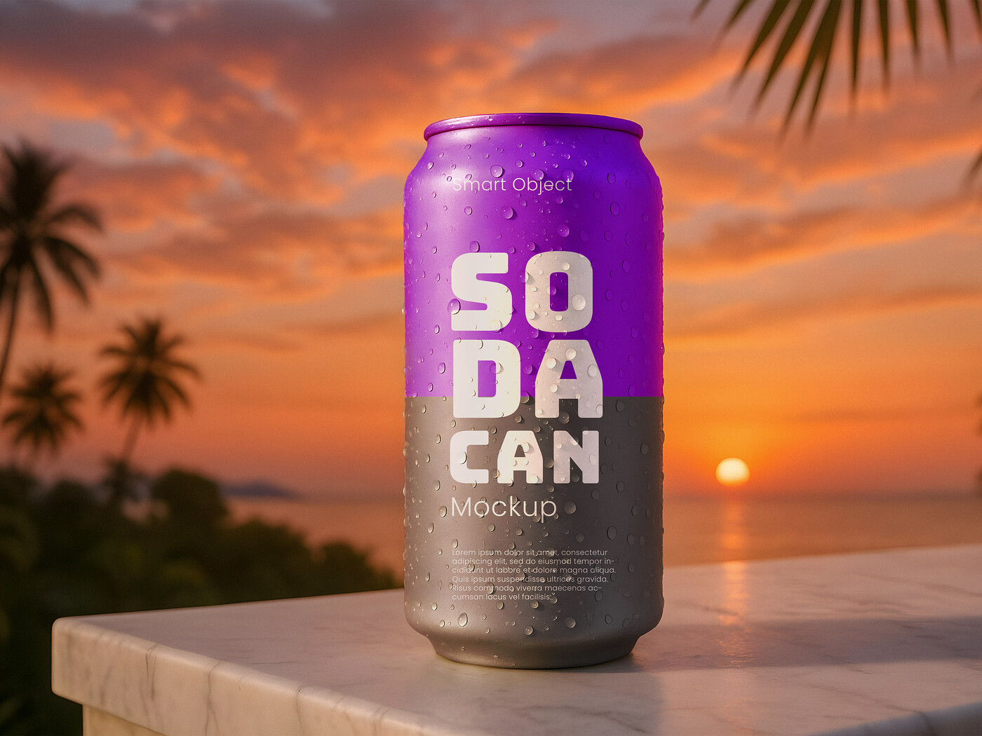 Showcase your beverage brand with this eye-catching Soda Can Mockup PSD Template. This realistic mockup features a cold, sweating soda can set against a beautiful sunset beach background, perfect for presenting your drink packaging, branding, or logo designs. The smart object in the PSD file lets you easily apply your own branding and adjust the colors to create a stunning, professional presentation for your portfolio or clients.