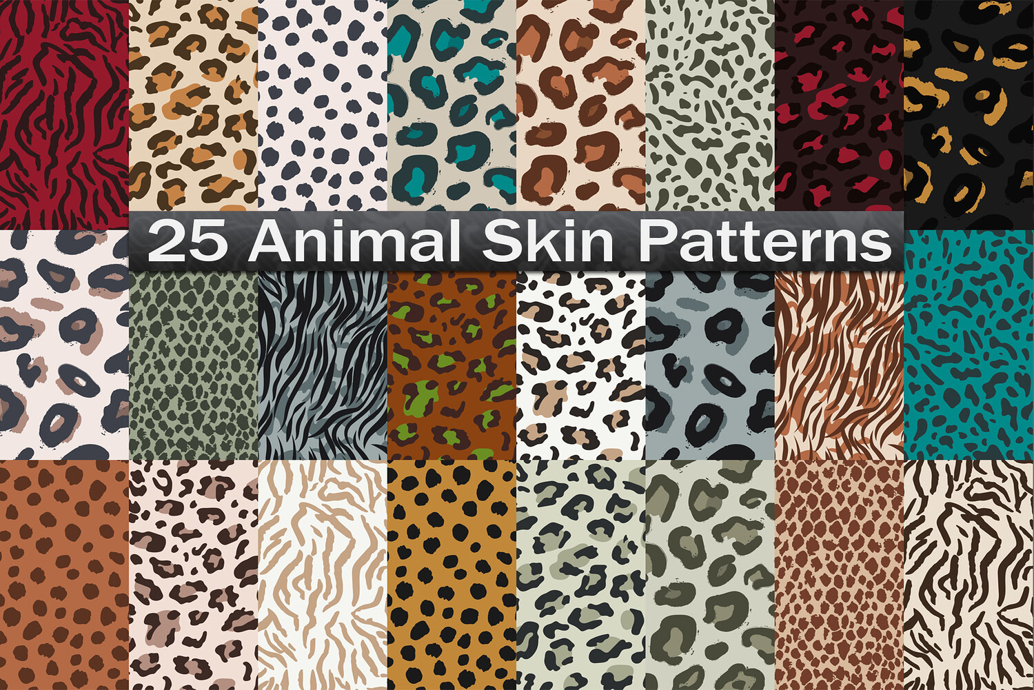 25 Animal Skin Patterns, Realistic Leopard, Zebra, Tiger, Cheetah, Snake Digital Paper Pack