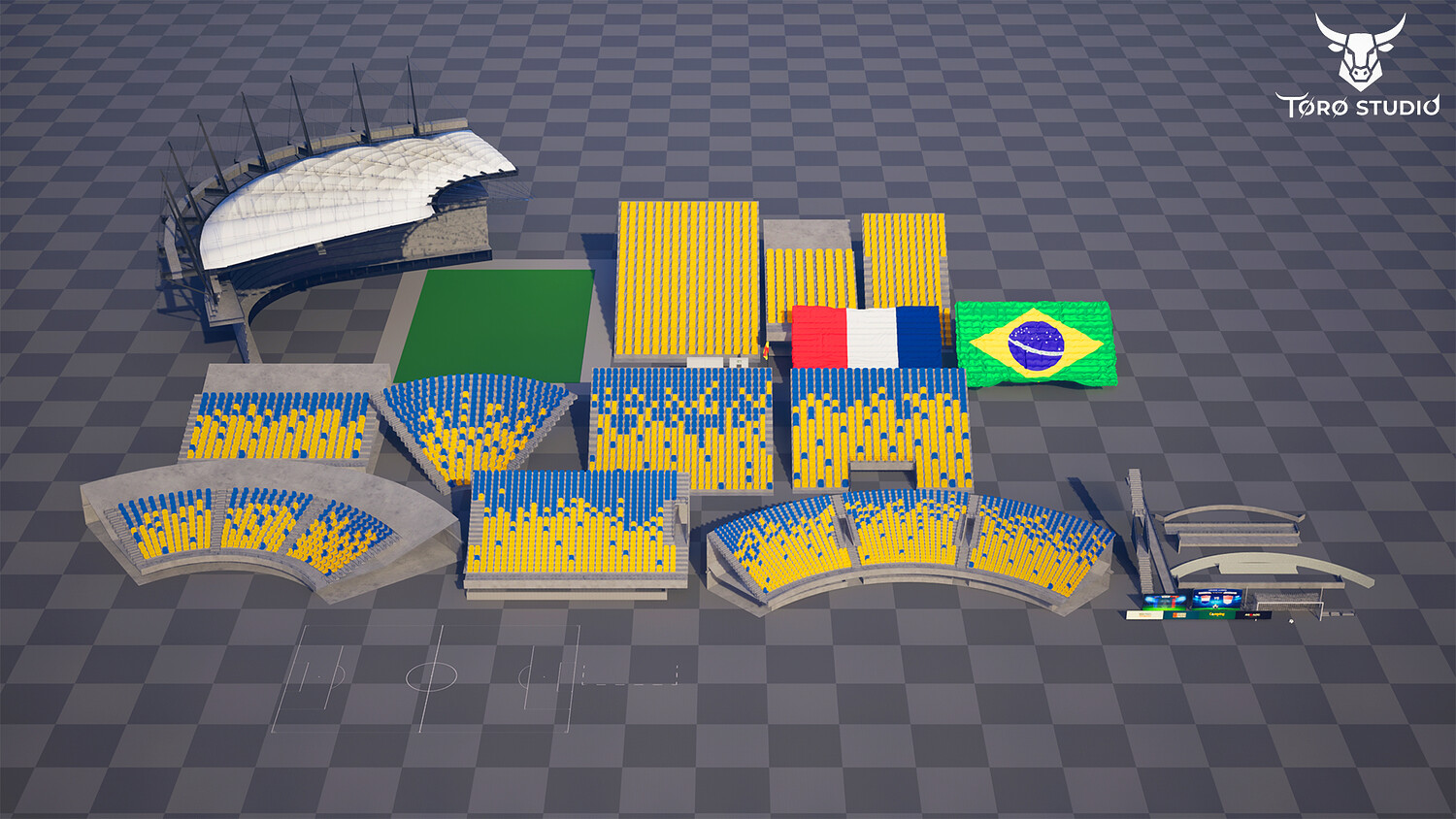 The package includes a fully assembled demo level, showcasing all assets with professional lighting, accurate scale, and well-balanced composition. This allows you to quickly preview the overall atmosphere, stadium layout, and visual fidelity of the environment.
