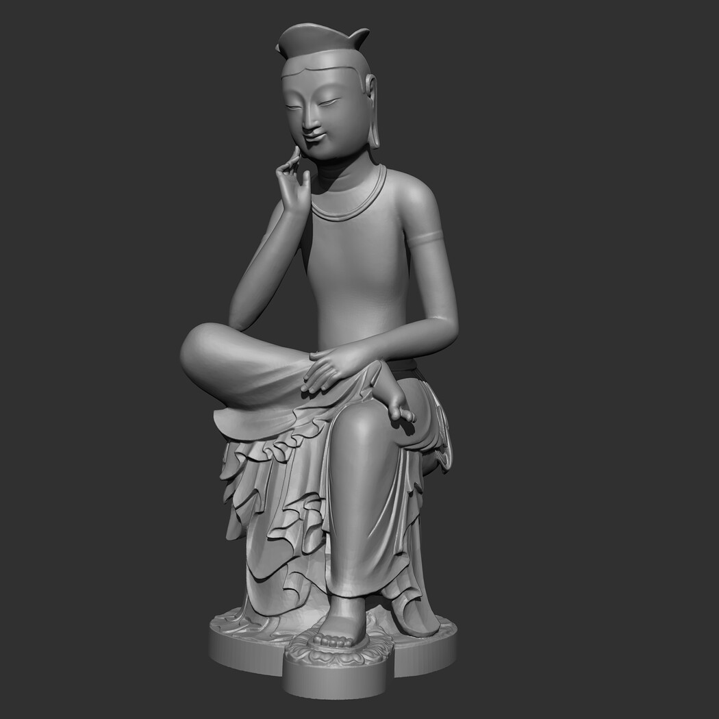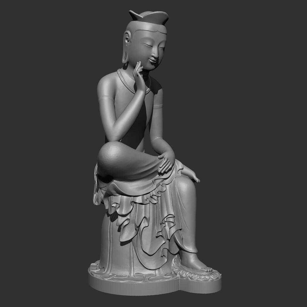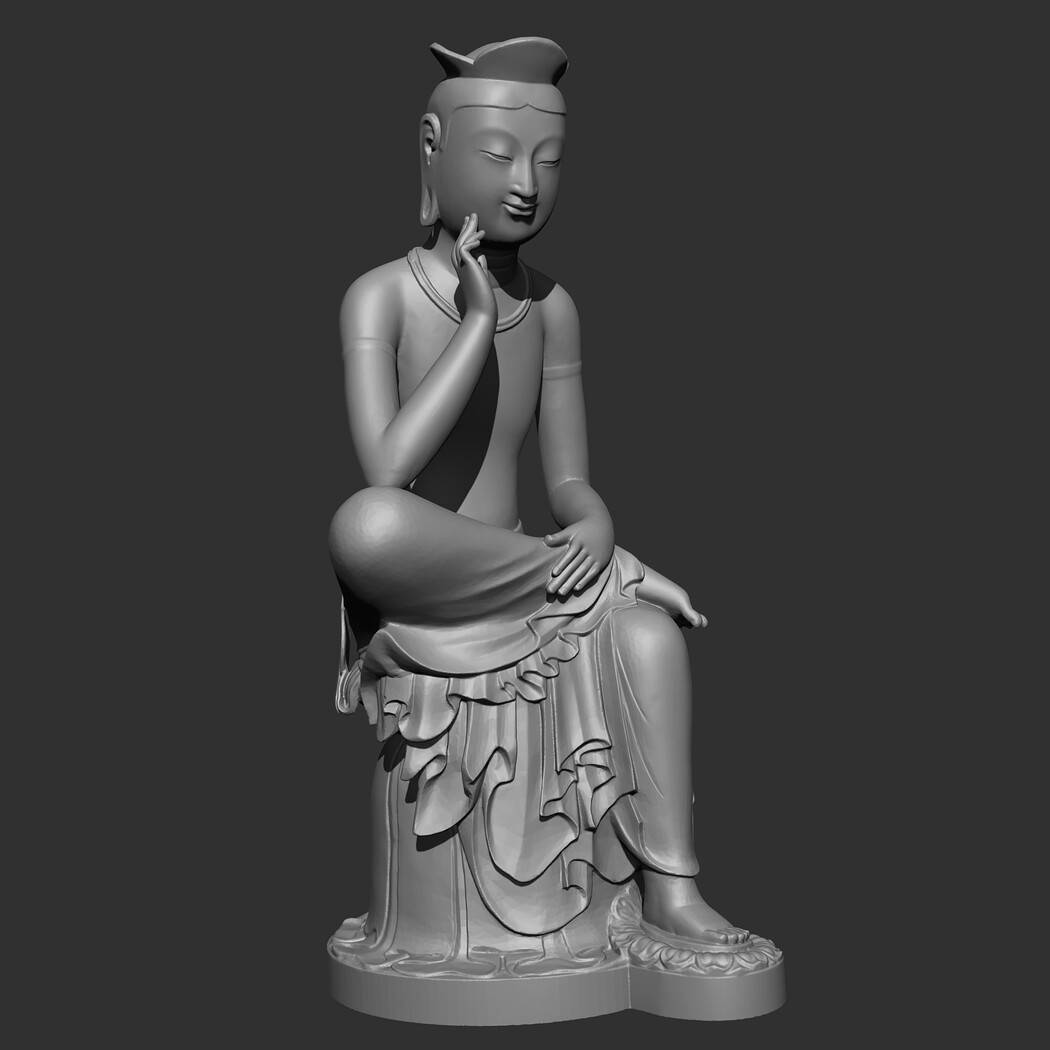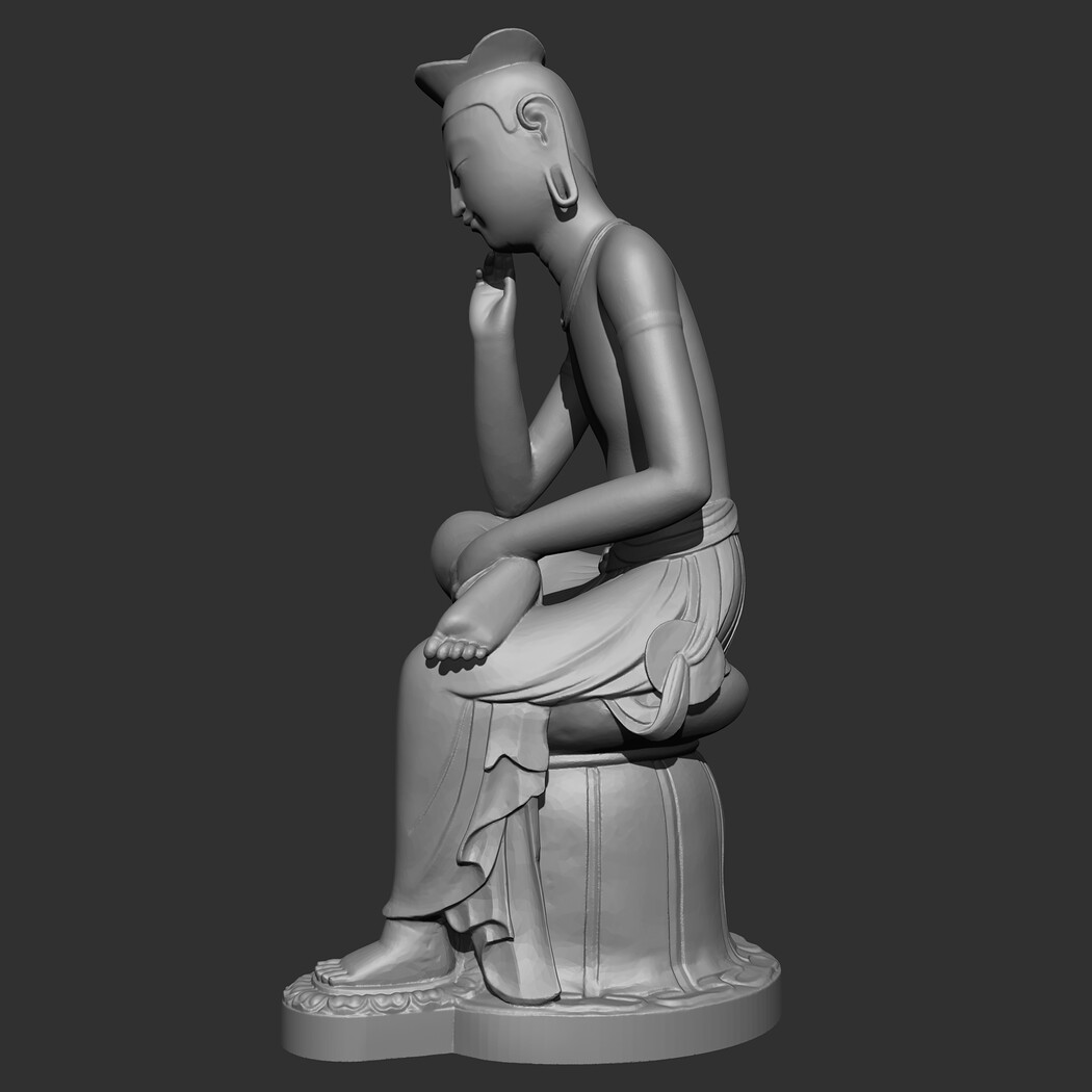 The Gilt-bronze Maitreya in Meditation is a gilt-bronze statue of what is believed to be the Maitreya, the future Buddha, in a semi-seated contemplative pose. It is commonly referred to as the Contemplative Bodhisattva, Pensive Bodhisattva, or Gilt-Bronze Seated Maitreya in English. In Korean it is frequently referred to as pan'gasayusang. It is the National Treasure of Korea No. 83. 3D model prepared for 3D printing . Model height 12 cm . feel free to scale it. The model is presented in formats Obj, Stl. the number of polygons 930802. It is ready for printing.