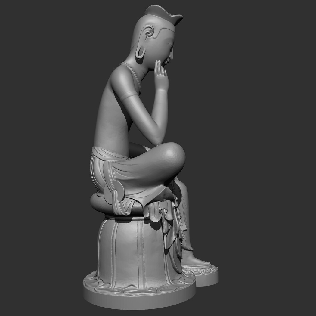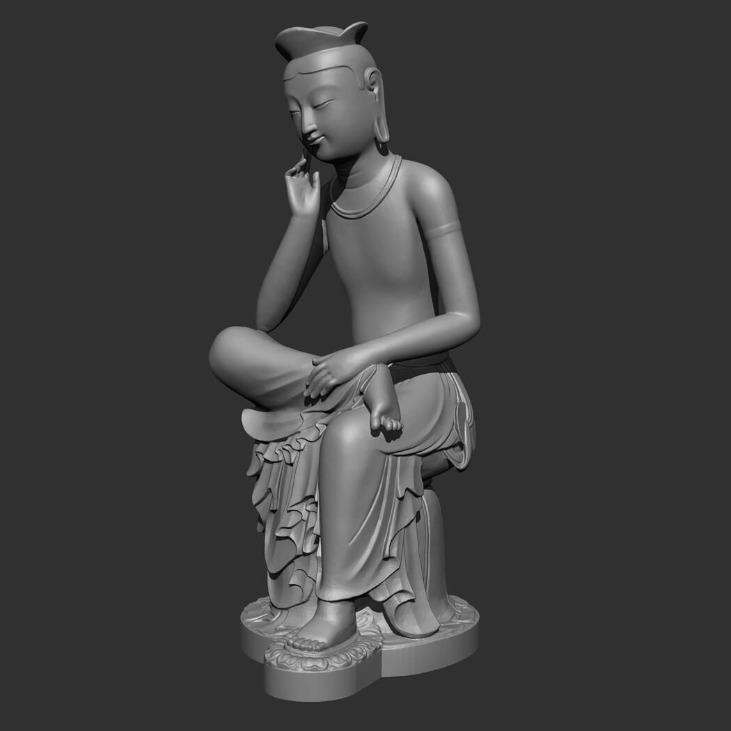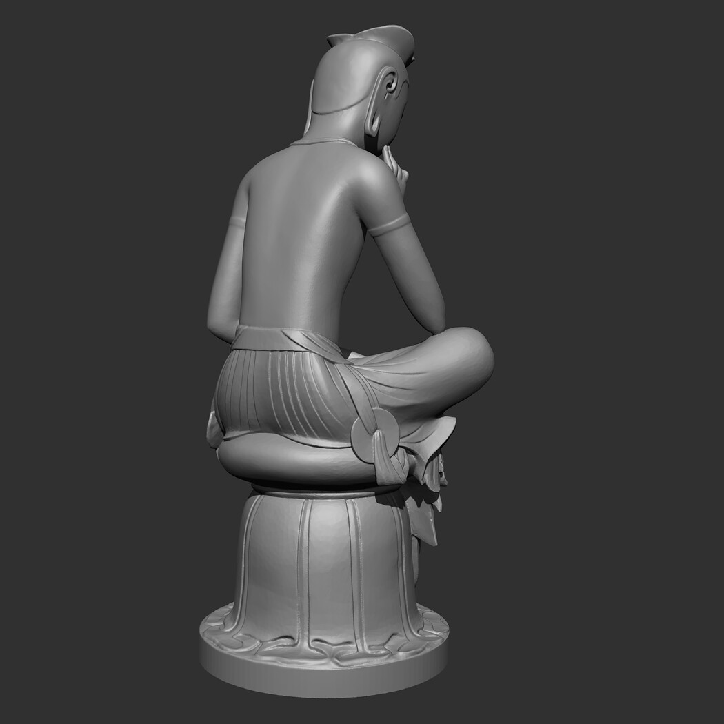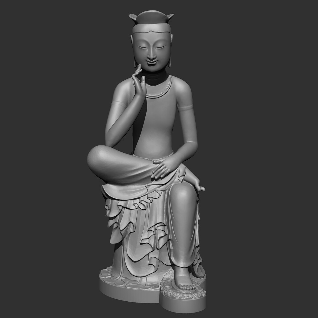 The Gilt-bronze Maitreya in Meditation is a gilt-bronze statue of what is believed to be the Maitreya, the future Buddha, in a semi-seated contemplative pose. It is commonly referred to as the Contemplative Bodhisattva, Pensive Bodhisattva, or Gilt-Bronze Seated Maitreya in English. In Korean it is frequently referred to as pan'gasayusang. It is the National Treasure of Korea No. 83. 3D model prepared for 3D printing . Model height 12 cm . feel free to scale it. The model is presented in formats Obj, Stl. the number of polygons 930802. It is ready for printing.