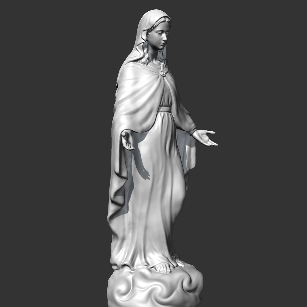 Virgin Mary Statue V3 3D print model Mary was a first-century Jewish woman of Nazareth, the wife of Joseph and the mother of Jesus. 3D model prepared for 3D printing . Model height 12 cm . feel free to scale it. The model is presented in formats Stl. the number of polygons 1884930. It is ready for printing.