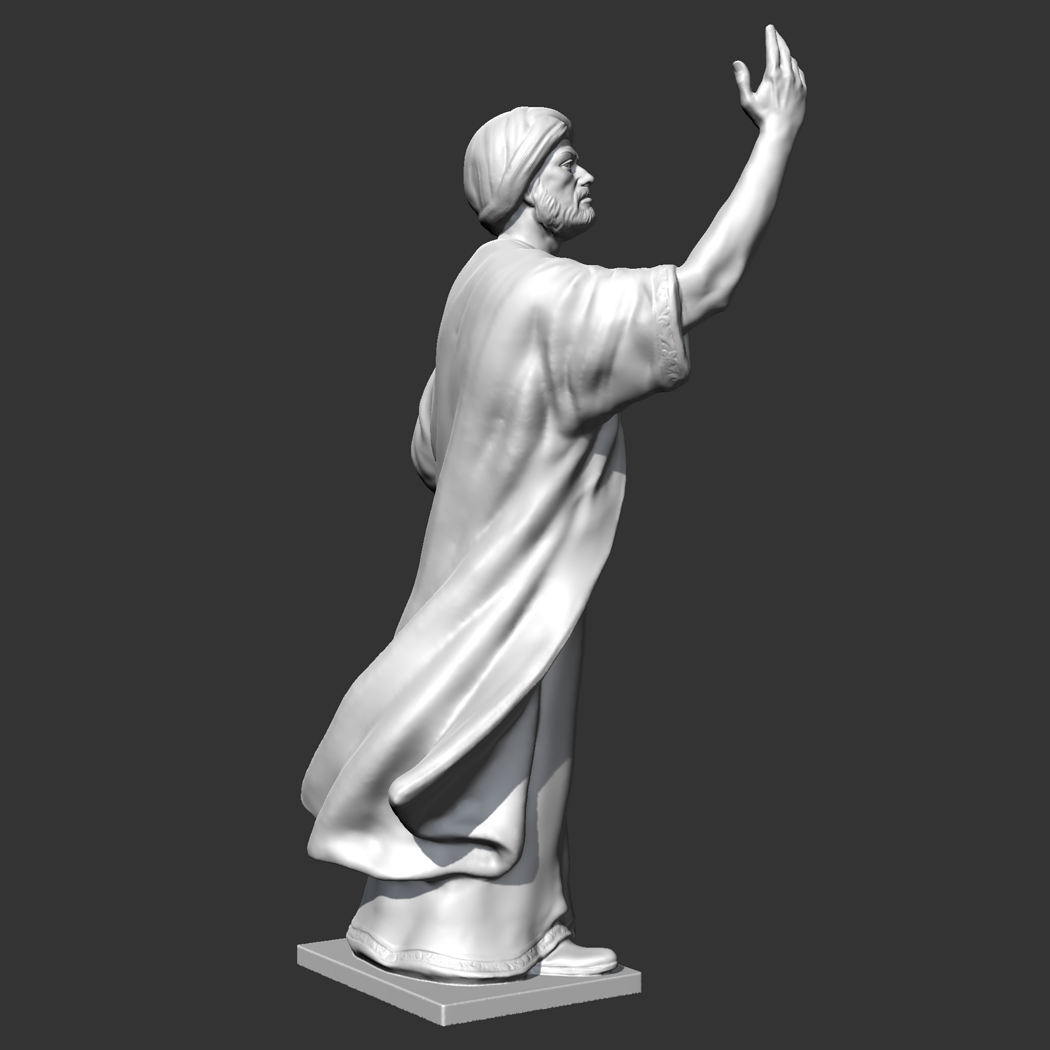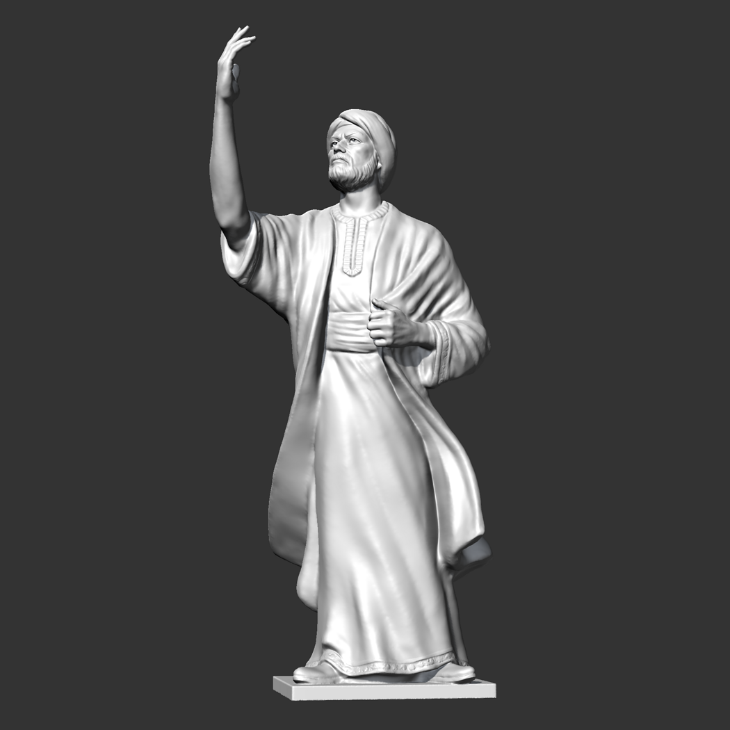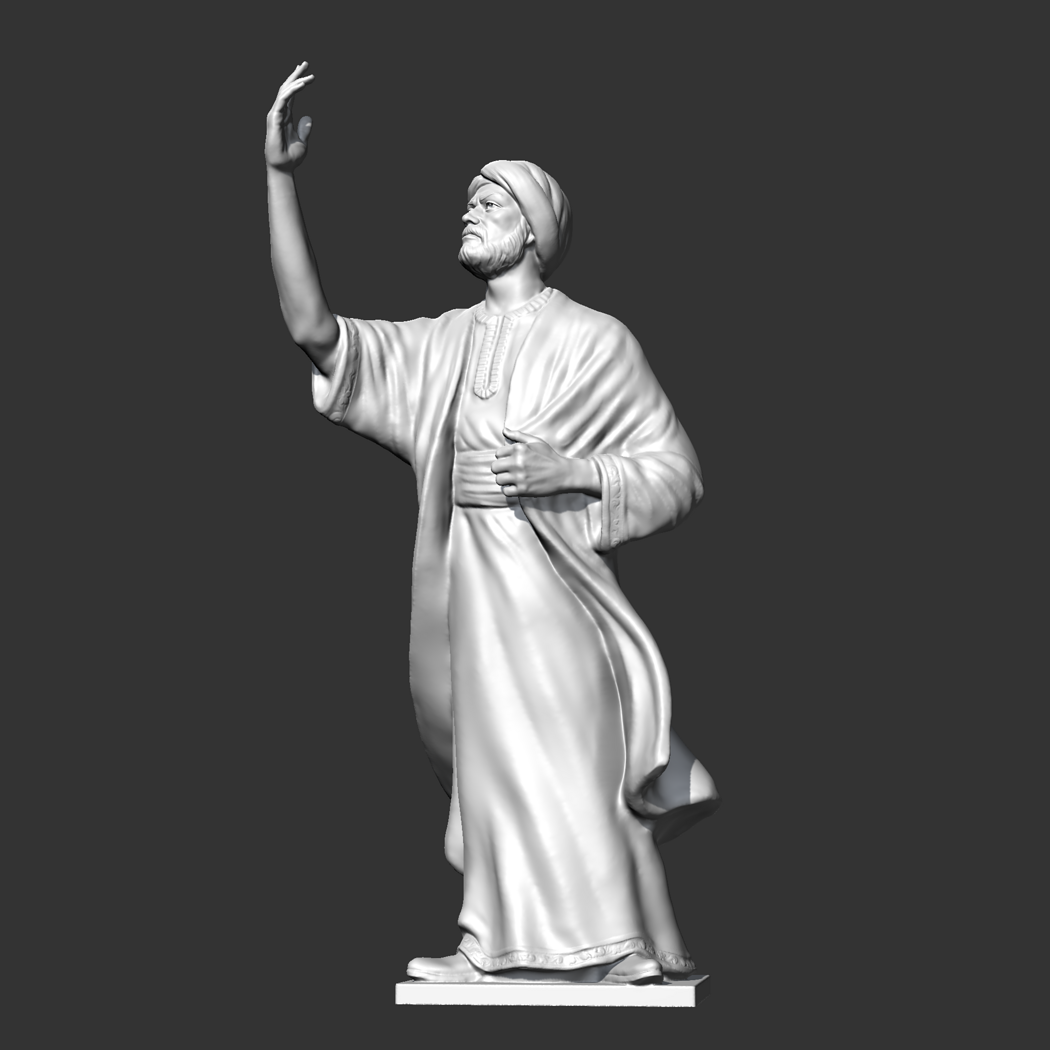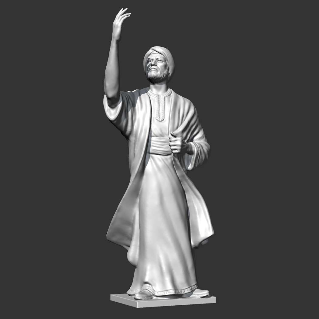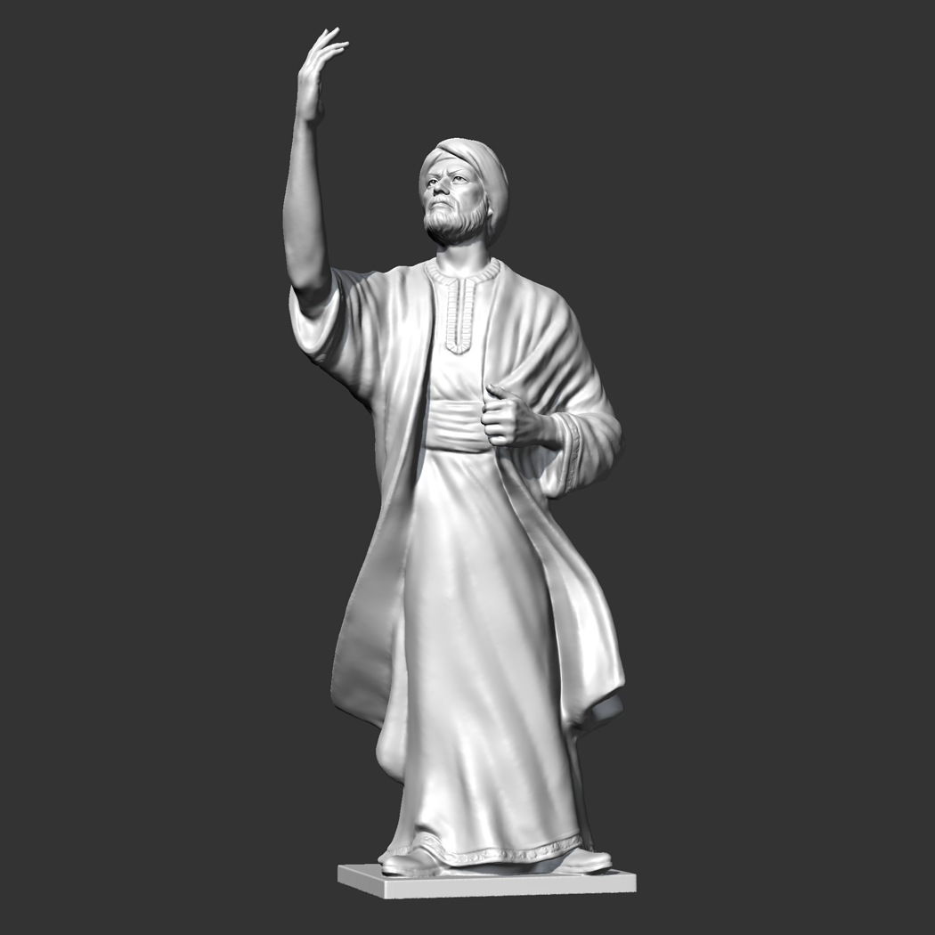Al Mutanabi was a famous Abbasid Arab poet at the court of Emir Saif al-Dawlah of the Hamdani dynasty in Aleppo, and composed Folio 300 for him. 3D model prepared for 3D printing . Model height 12 cm . feel free to scale it. The model is presented in formats Obj, Stl. the number of polygons 1855184. It is ready for printing.