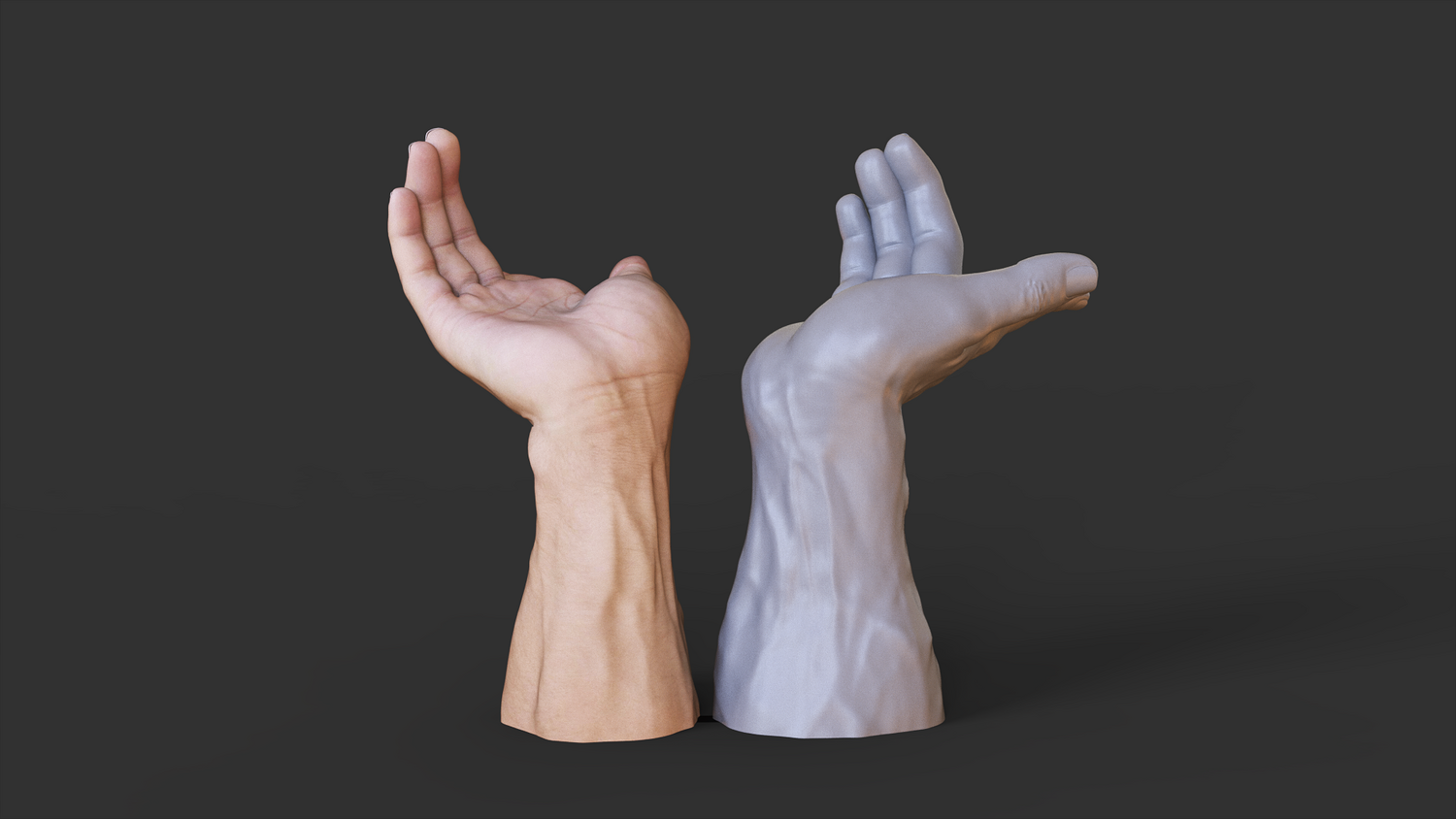 Male Hand Pose 3D model is a high quality, photo real model that will enhance detail and realism to any of your 3d print projects. The model has a detailed sculpt that allows for close-up renders. Ready to print with clean topology and high resolution of polygons. This Package includes the files for .Blend, .Obj, .Stl, .Fbx, .gltf, .glb, .3mf