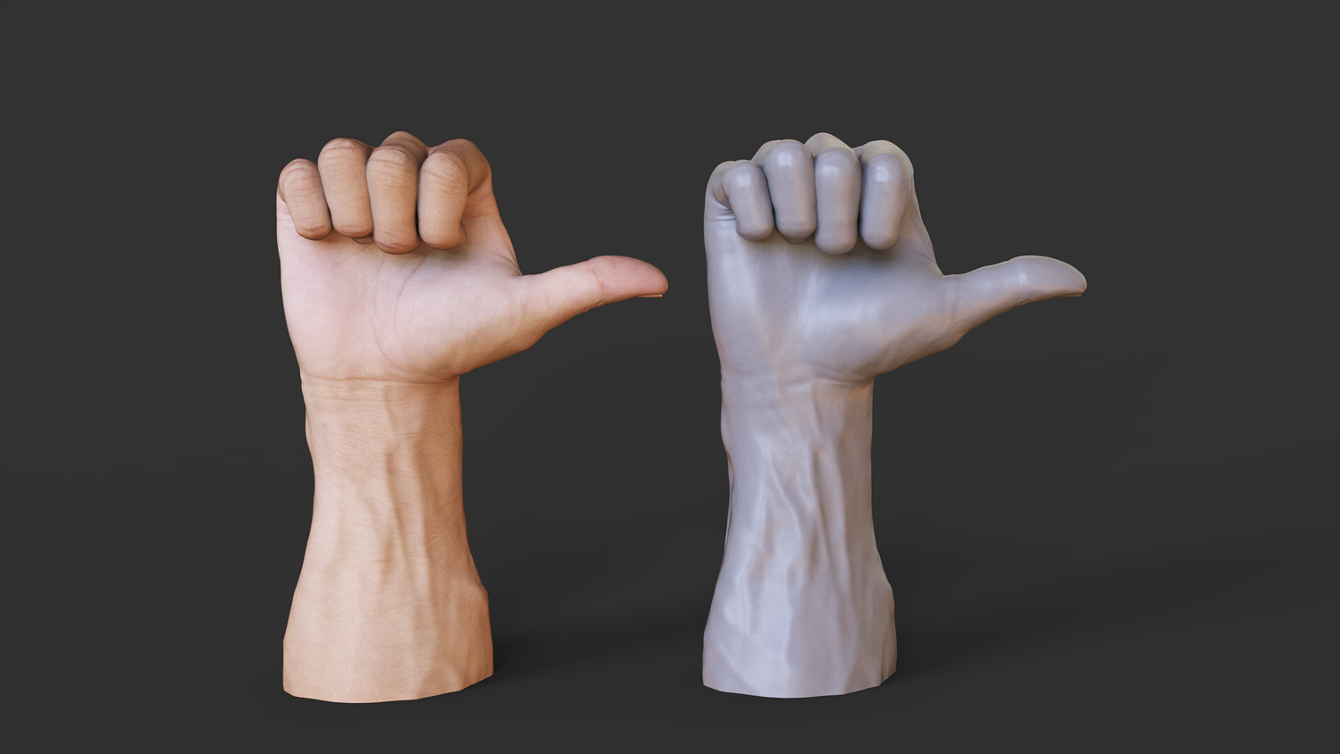 Male Hand Pose 3D model is a high quality, photo real model that will enhance detail and realism to any of your 3d print projects. The model has a detailed sculpt that allows for close-up renders. Ready to print with clean topology and high resolution of polygons. This Package includes the files for .Blend, .Obj, .Stl, .Fbx, .gltf, .glb, .3mf