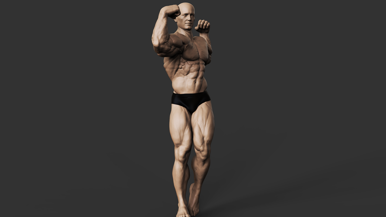 Bodybuilder Pose 3D model is a high quality, photo real model that will enhance detail and realism to any of your 3d print projects. The model has a detailed sculpt that allows for close-up renders. Ready to print with clean topology and high resolution of polygons This Package includes the files for .Blend, .Obj, .Stl, .Fbx, .gltf, .glb, .3mf