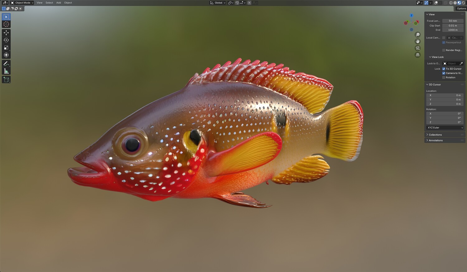 INFO: - Asymmetrical fish 3d model - Textures embedded in blender too - Ready to render in Blender with Cycles/EEVEE - Made in Cinema 4d - Auto UV and Auto topolgy done in cinema 4d - Cinema 4d and blender 3d files are textured linked - 4k Textures, Only Diffuse map - Bump and SSS also used in blender - UV mapped - Best for publication, visualition etc.