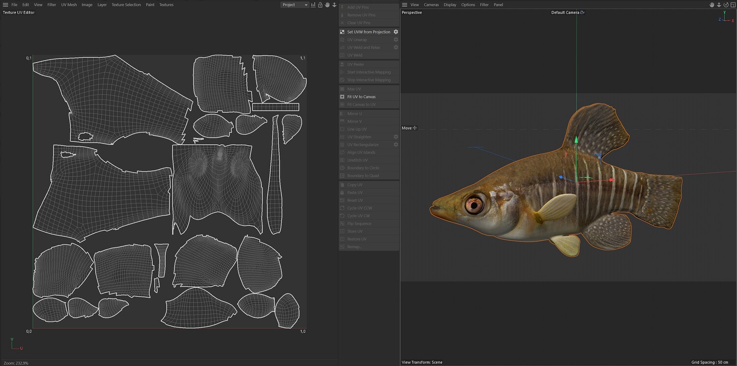 INFO: - Asymmetrical fish 3d model - Textures embedded in blender too - Ready to render in Blender with Cycles/EEVEE - Made in Cinema 4d - Auto UV and Auto topolgy done in cinema 4d - Cinema 4d and blender 3d files are textured linked - 4k Textures, Only Diffuse map - Bump and SSS also used in blender - UV mapped - Best for publication, visualition etc.