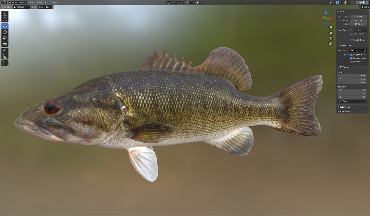 INFO: - Asymmetrical fish 3d model - Textures embedded in blender too - Ready to render in Blender with Cycles/EEVEE - Made in Cinema 4d - Auto UV and Auto topolgy done in cinema 4d - Cinema 4d and blender 3d files are textured linked - 4k Textures, Only Diffuse map - Bump and SSS also used in blender - UV mapped - Best for publication, visualition etc.