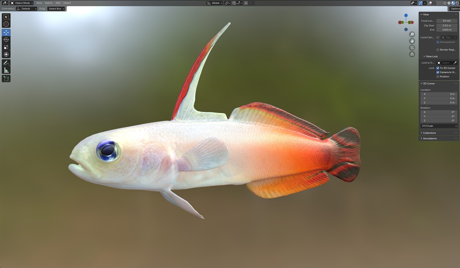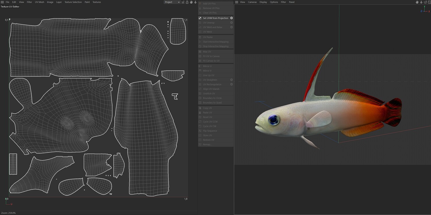 INFO: - Asymmetrical fish 3d model - Textures embedded in blender too - Ready to render in Blender with Cycles/EEVEE - Made in Cinema 4d - Auto UV and Auto topolgy done in cinema 4d - Cinema 4d and blender 3d files are textured linked - 4k Textures, Only Diffuse map - Bump and SSS also used in blender - UV mapped - Best for publication, visualition etc.