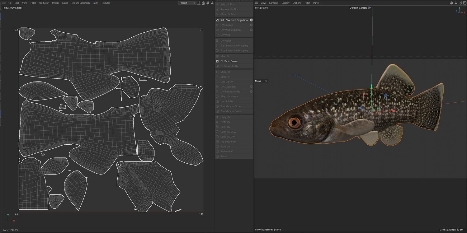 INFO: - Asymmetrical fish 3d model - Textures embedded in blender too - Ready to render in Blender with Cycles/EEVEE - Made in Cinema 4d - Auto UV and Auto topolgy done in cinema 4d - Cinema 4d and blender 3d files are textured linked - 4k Textures, Only Diffuse map - Bump and SSS also used in blender - UV mapped - Best for publication, visualition etc.