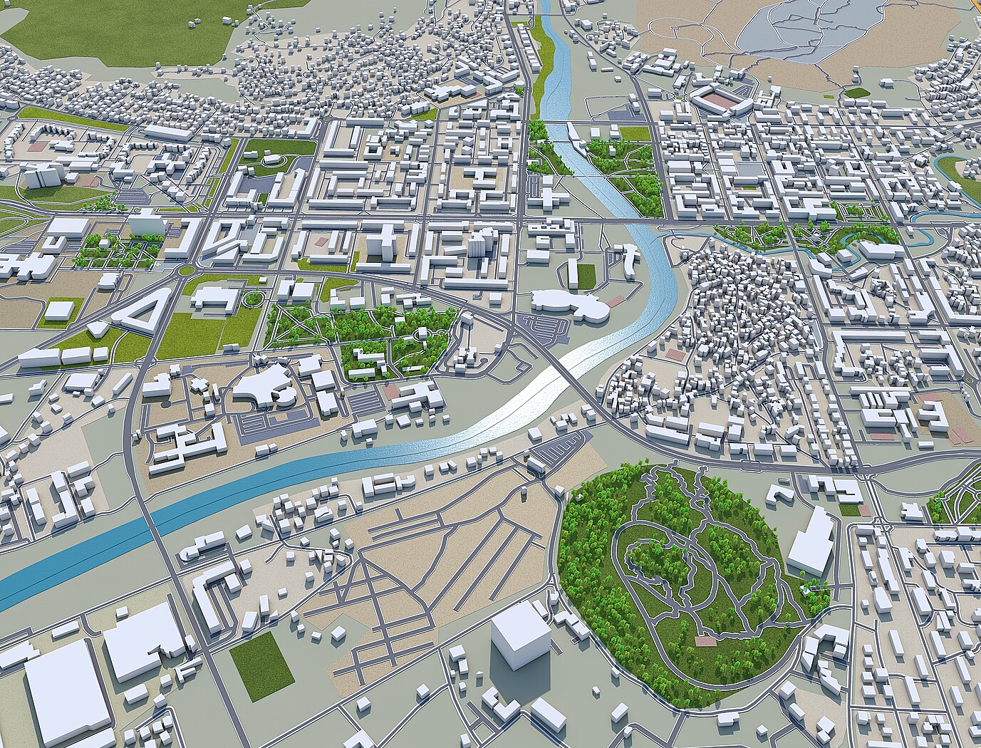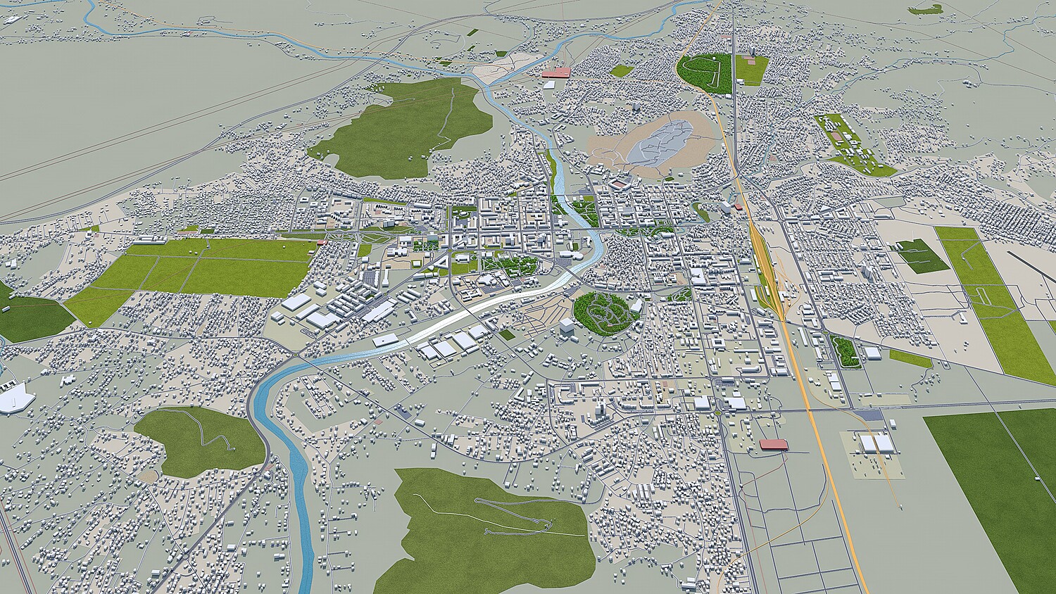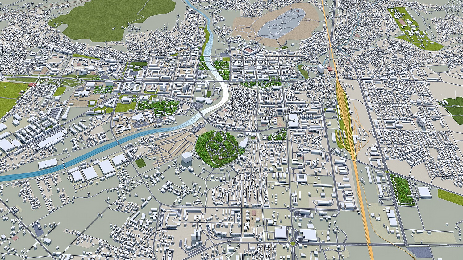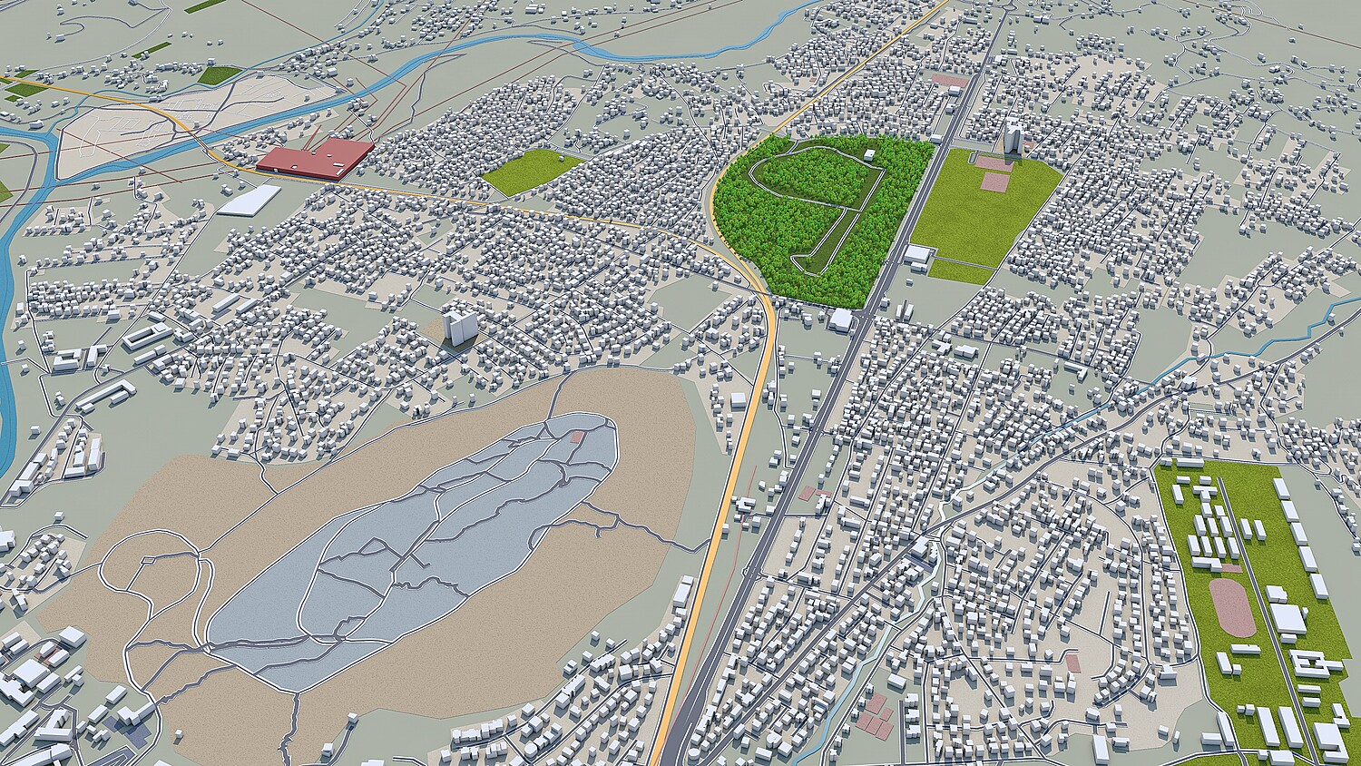 – Accurate 3D city model and its surrounding area based on GIS data Year 2021 – Size: 30 km – Made in cinema 4d, Ready to render – Building stroke used in cinema 4d with sketch and toon effect – Trees (mograph cloner), Water Effect and Stroked Roads are only in cinema 4d file – Render in standard settings – No Plugins used – Low Poly – Base Satellite and map texture is included – Royalty free model – Polygons: 5m+ in big cities – Layers: Building, roads, routes, amenity, leisure, landuse, natural, water, man made, railway/train, aeroway etc. – Formats: C4d(Native), 3ds, stl, fbx and obj. FORMATS INCLUDED:obj, fbx, 3ds, stl and c4d native format render ready. 1. Suitable for Games, Games, Education, Architecture etc. 2. Mainly used for town and urban planning, real estate etc