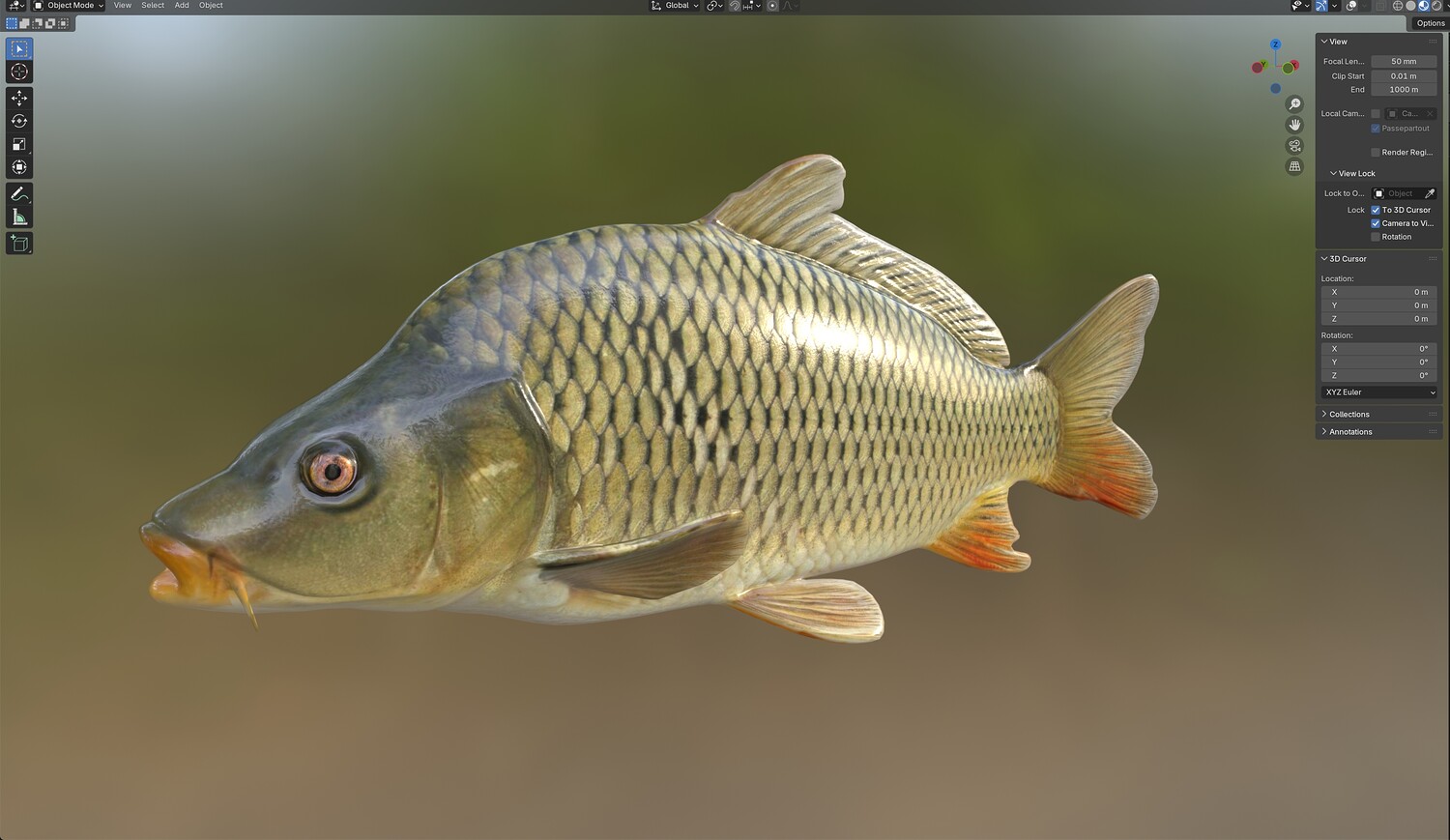 INFO: - Asymmetrical fish 3d model - Textures embedded in blender too - Ready to render in Blender with Cycles/EEVEE - Made in Cinema 4d - Auto UV and Auto topolgy done in cinema 4d - Cinema 4d and blender 3d files are textured linked - 4k Textures, Only Diffuse map - Bump and SSS also used in blender - UV mapped - Best for publication, visualition etc.