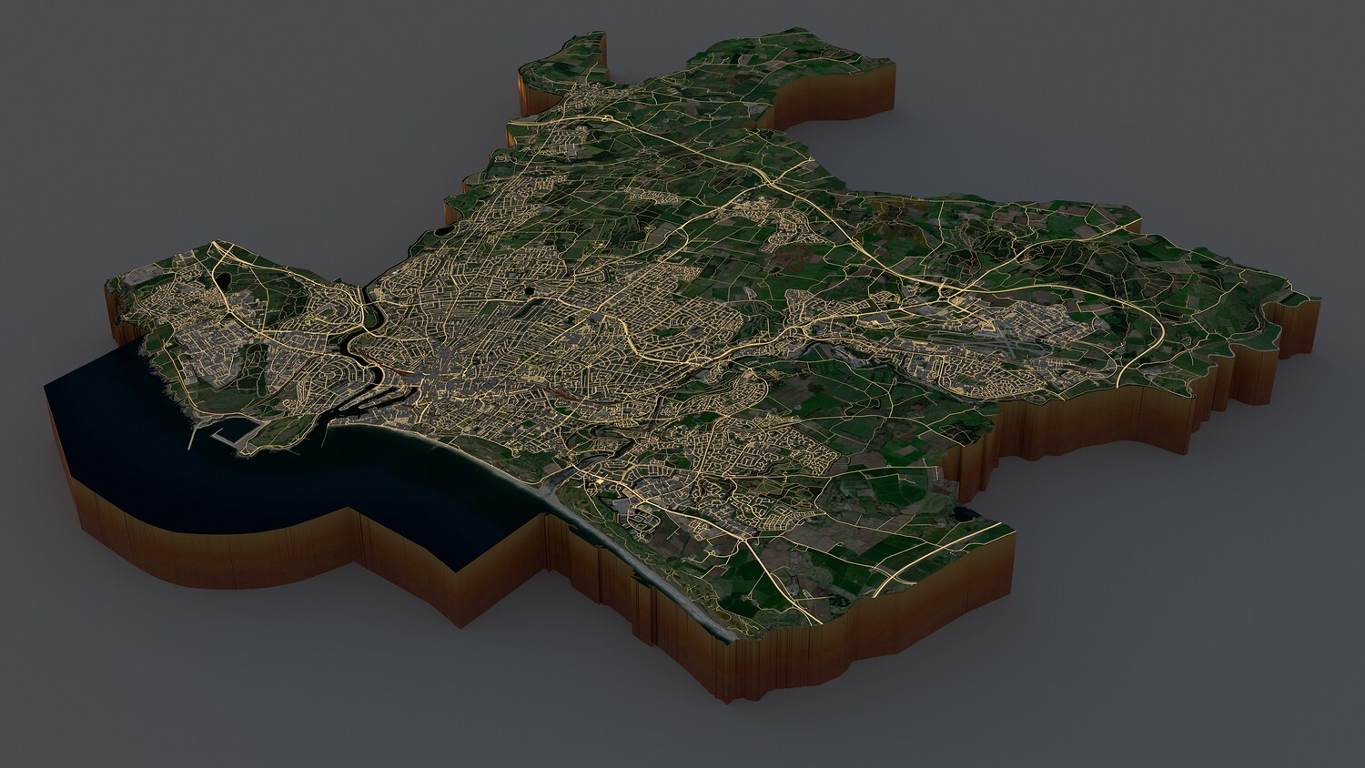 Info: Base satellite texture embedded in blender too Ready to render in Blender with Cycles/EEVEE Terrain, Buildings, Roads are in separated layers Terrain base is high poly Strata material is blender nodes No Plugins used UV mapped is only terrain Royalty free model 3D print is not tested, user will have to do at their own Roads/building etc may have artifact due to terrain landscape, can be seen in renders.