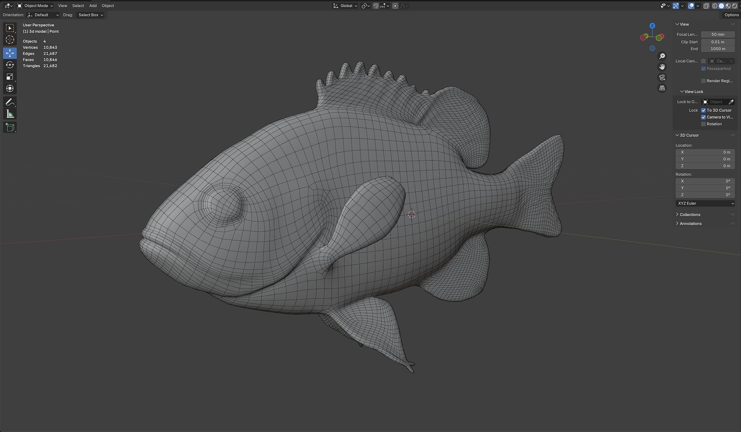INFO: - Asymmetrical fish 3d model - Textures embedded in blender too - Ready to render in Blender with Cycles/EEVEE - Made in Cinema 4d - Auto UV and Auto topolgy done in cinema 4d - Cinema 4d and blender 3d files are textured linked - 4k Textures, Only Diffuse map - Bump and SSS also used in blender - UV mapped - Best for publication, visualition etc.