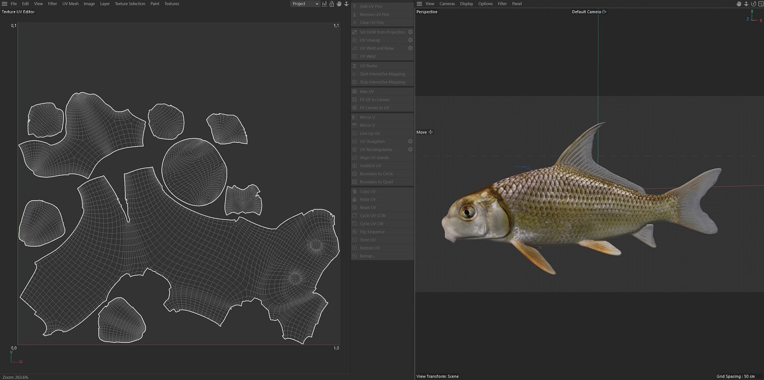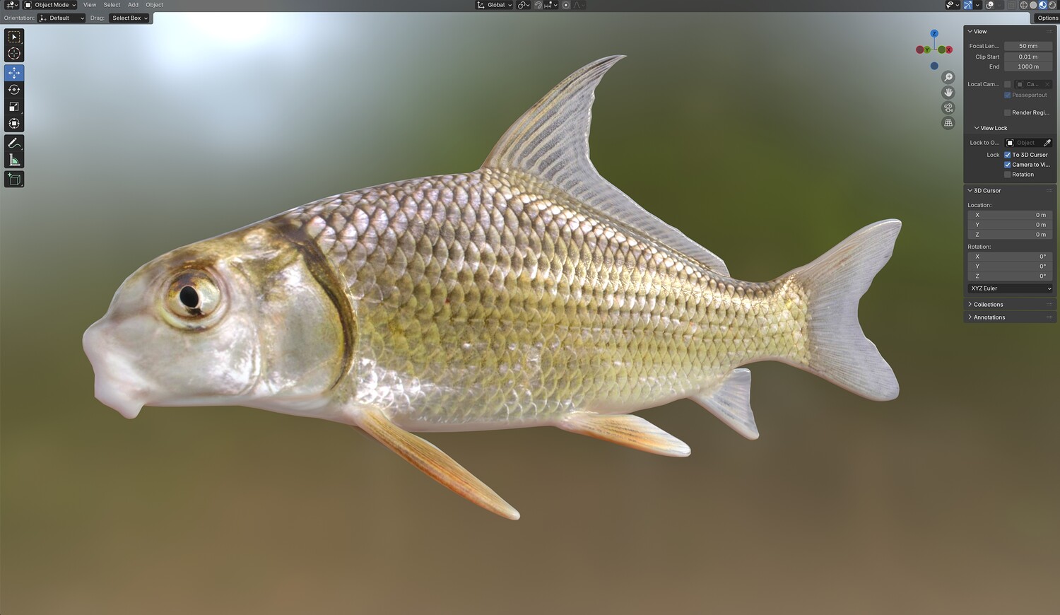 INFO: - Asymmetrical fish 3d model - Textures embedded in blender too - Ready to render in Blender with Cycles/EEVEE - Made in Cinema 4d - Auto UV and Auto topolgy done in cinema 4d - Cinema 4d and blender 3d files are textured linked - 4k Textures, Only Diffuse map - Bump and SSS also used in blender - UV mapped - Best for publication, visualition etc.