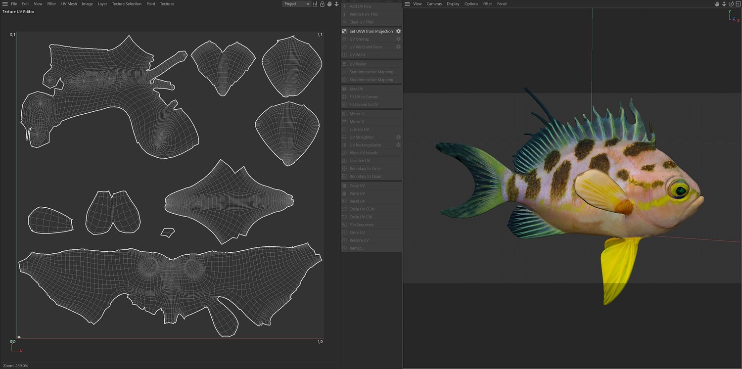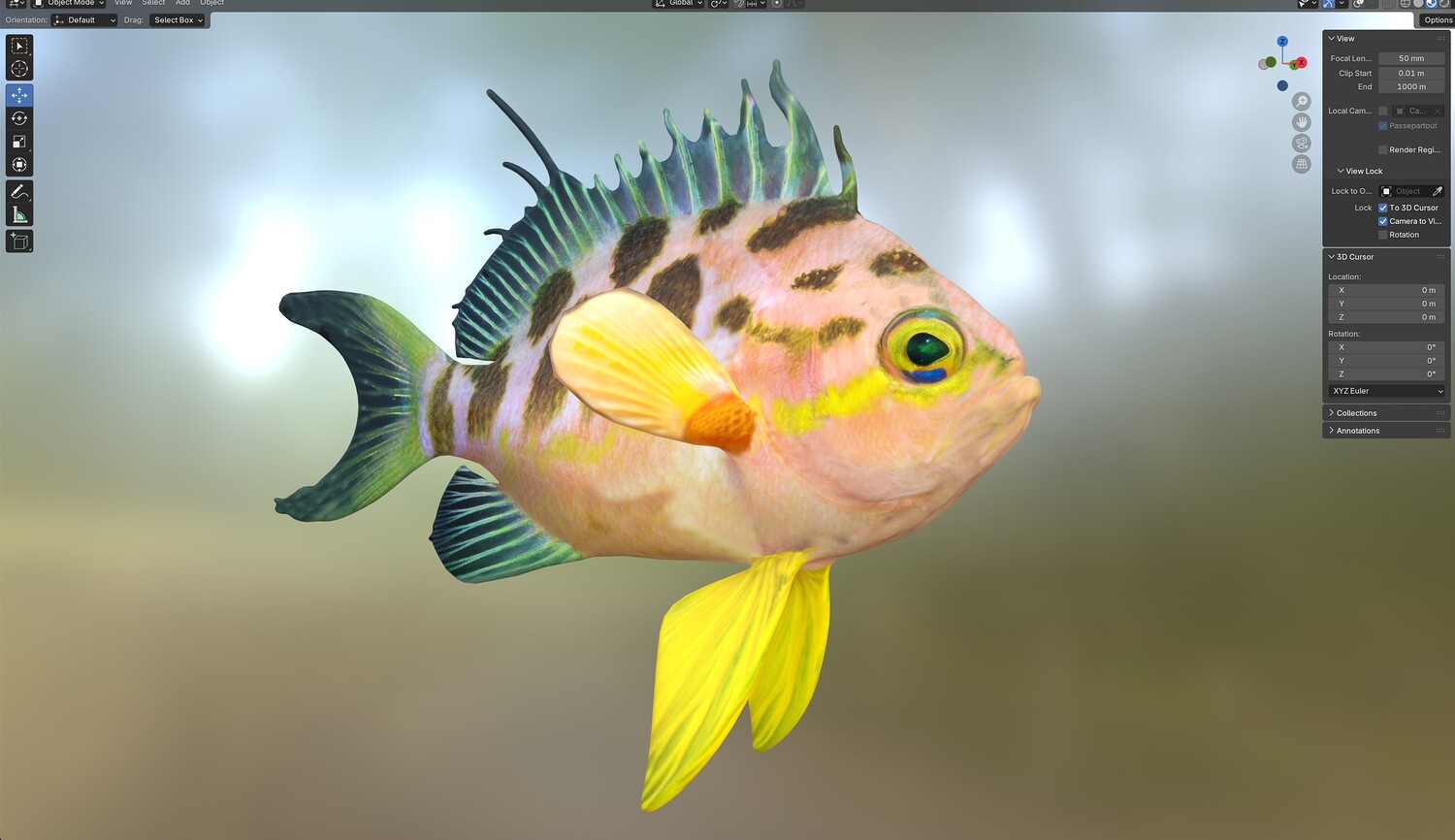 INFO: - Asymmetrical fish 3d model - Textures embedded in blender too - Ready to render in Blender with Cycles/EEVEE - Made in Cinema 4d - Auto UV and Auto topolgy done in cinema 4d - Cinema 4d and blender 3d files are textured linked - 4k Textures, Only Diffuse map - Bump and SSS also used in blender - UV mapped - Best for publication, visualition etc.