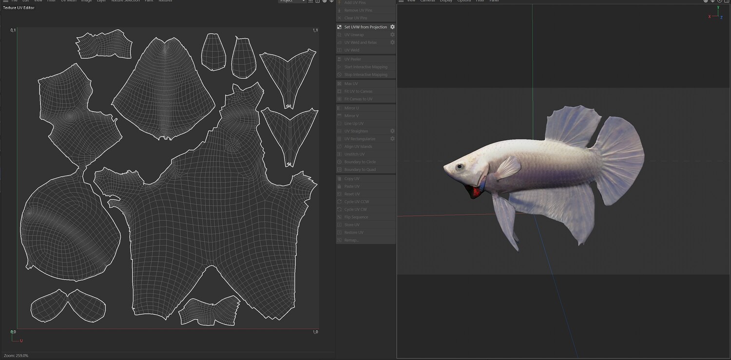 INFO: - Asymmetrical fish 3d model - Textures embedded in blender too - Ready to render in Blender with Cycles/EEVEE - Made in Cinema 4d - Auto UV and Auto topolgy done in cinema 4d - Cinema 4d and blender 3d files are textured linked - 4k Textures, Only Diffuse map - Bump and SSS also used in blender - UV mapped - Best for publication, visualition etc.