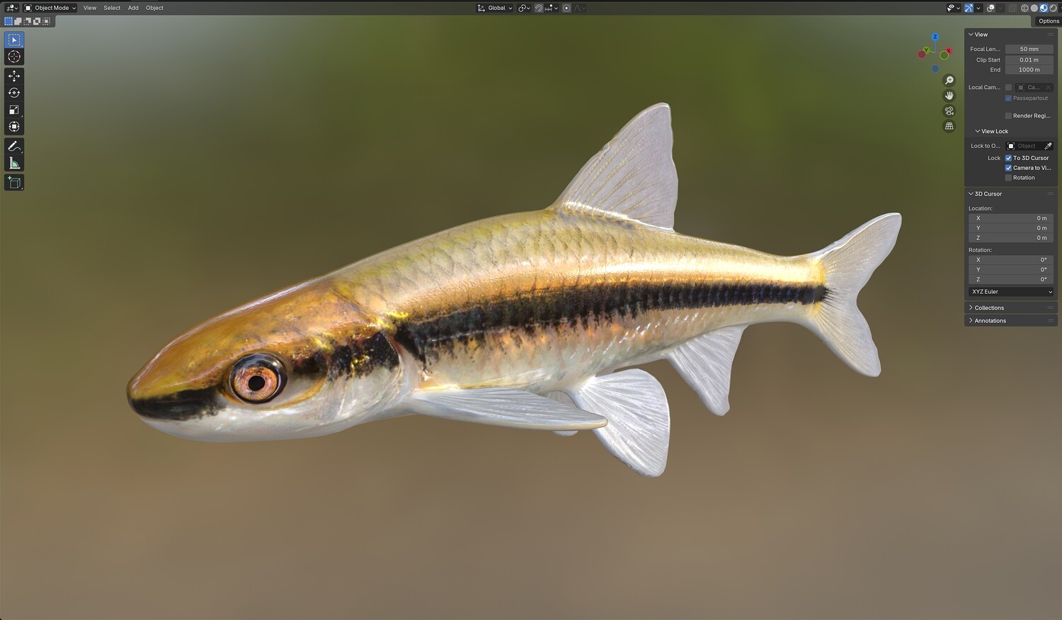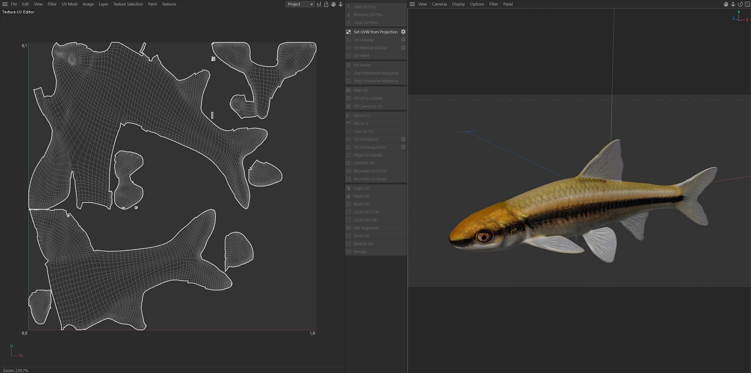INFO: - Asymmetrical fish 3d model - Textures embedded in blender too - Ready to render in Blender with Cycles/EEVEE - Made in Cinema 4d - Auto UV and Auto topolgy done in cinema 4d - Cinema 4d and blender 3d files are textured linked - 4k Textures, Only Diffuse map - Bump and SSS also used in blender - UV mapped - Best for publication, visualition etc.