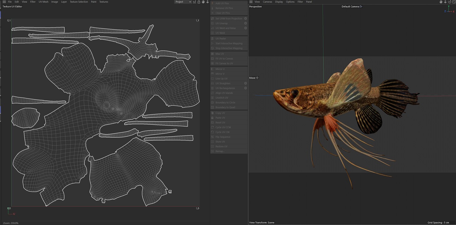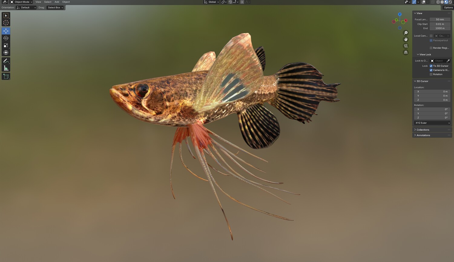 INFO: - Asymmetrical fish 3d model - Textures embedded in blender too - Ready to render in Blender with Cycles/EEVEE - Made in Cinema 4d - Auto UV and Auto topolgy done in cinema 4d - Cinema 4d and blender 3d files are textured linked - 4k Textures, Only Diffuse map - Bump and SSS also used in blender - UV mapped - Best for publication, visualition etc.
