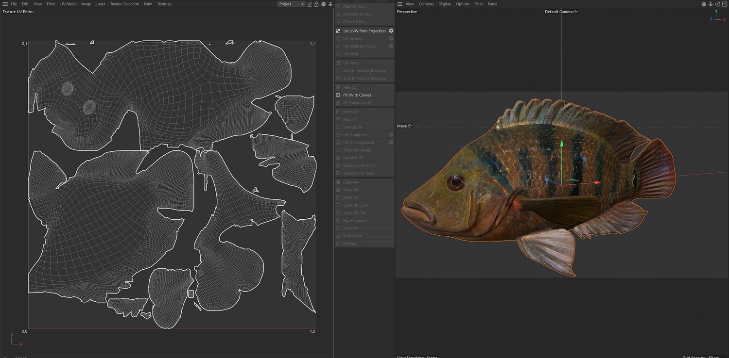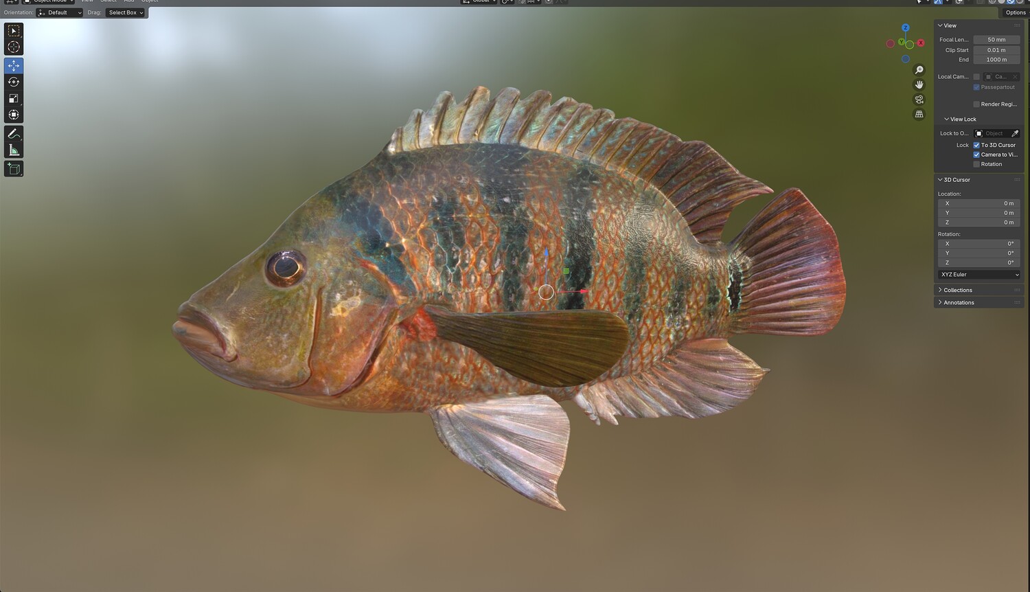 INFO: - Asymmetrical fish 3d model - Textures embedded in blender too - Ready to render in Blender with Cycles/EEVEE - Made in Cinema 4d - Auto UV and Auto topolgy done in cinema 4d - Cinema 4d and blender 3d files are textured linked - 4k Textures, Only Diffuse map - Bump and SSS also used in blender - UV mapped - Best for publication, visualition etc.