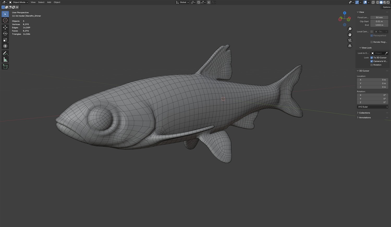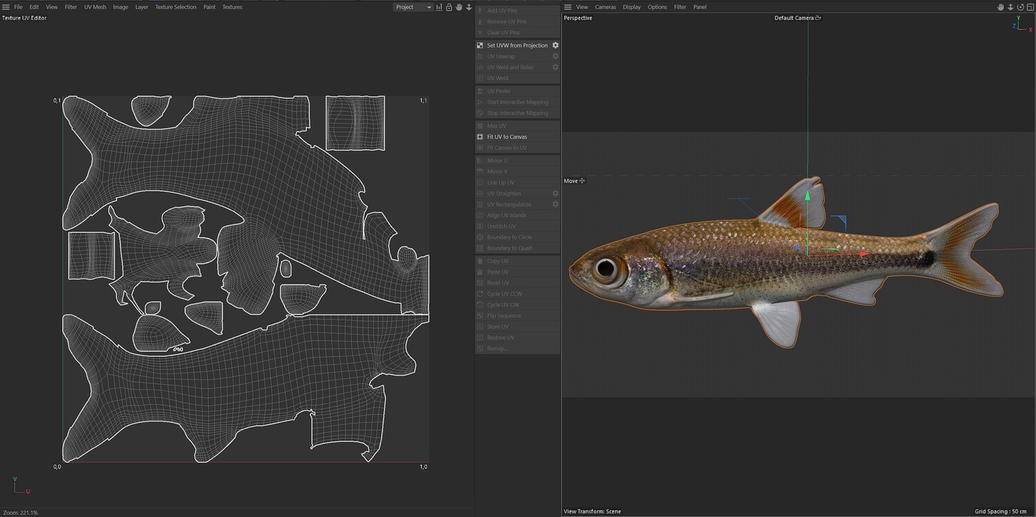 INFO: - Asymmetrical fish 3d model - Textures embedded in blender too - Ready to render in Blender with Cycles/EEVEE - Made in Cinema 4d - Auto UV and Auto topolgy done in cinema 4d - Cinema 4d and blender 3d files are textured linked - 4k Textures, Only Diffuse map - Bump and SSS also used in blender - UV mapped - Best for publication, visualition etc.