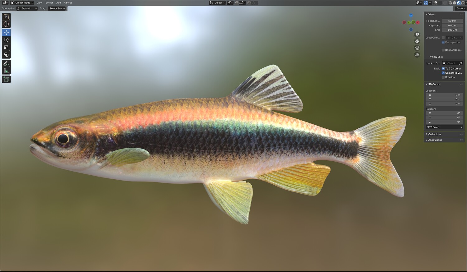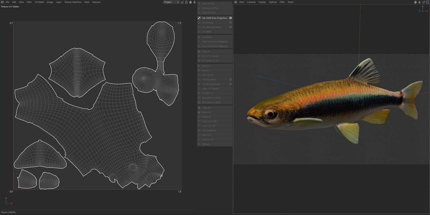 INFO: - Asymmetrical fish 3d model - Textures embedded in blender too - Ready to render in Blender with Cycles/EEVEE - Made in Cinema 4d - Auto UV and Auto topolgy done in cinema 4d - Cinema 4d and blender 3d files are textured linked - 4k Textures, Only Diffuse map - Bump and SSS also used in blender - UV mapped - Best for publication, visualition etc.